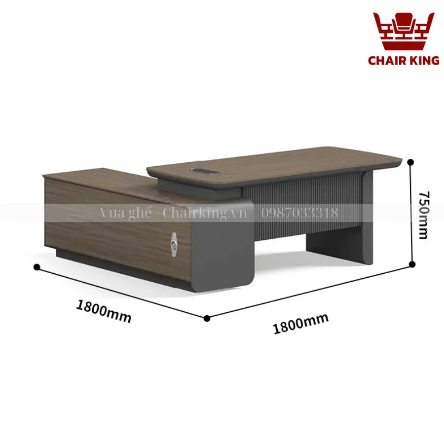 Bàn Chủ Tịch Chairking sở hữu thiết kế đẳng cấp, hiện đại với đường nét mạnh mẽ và tinh tế. Kiểu dáng bề thế với kích thước rộng rãi giúp chủ tịch thư thái làm việc, đồng thời tạo cảm giác vững chãi, chắc chắn. Màu sắc trầm đẳng cấp thích hợp với các không gian văn phòng khác nhau, từ hiện đại đến cổ điển. Các chi tiết được gia công tỉ mỉ, tạo nên tổng thể hài hòa, cân đối, góp phần nâng tầm đẳng cấp văn phòng.