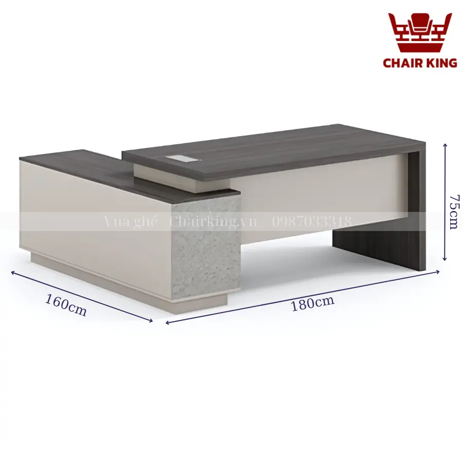 Bàn chủ tịch Chairking có màu sắc nổi bật, dễ dàng kết hợp với những không gian nội thất khác nhau, từ cổ điển đến hiện đại. Bên cạnh đó với sự đa dạng kích thước quý khách hàng dễ dàng chọn lựa được sản phẩm phù hợp với diện tích, môi trường làm việc của mình.