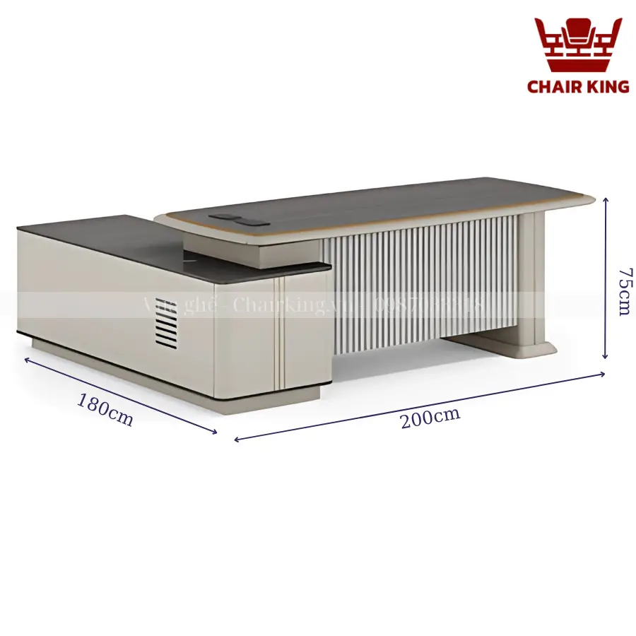 Bàn chủ tịch Chairking có màu sắc nổi bật, dễ dàng kết hợp với các không gian nội thất khác nhau, từ cổ điển đến hiện đại. Bên cạnh đó với sự đa dạng kích thước quý khách hàng dễ dàng chọn lựa được sản phẩm phù hợp với diện tích, môi trường làm việc của mình.