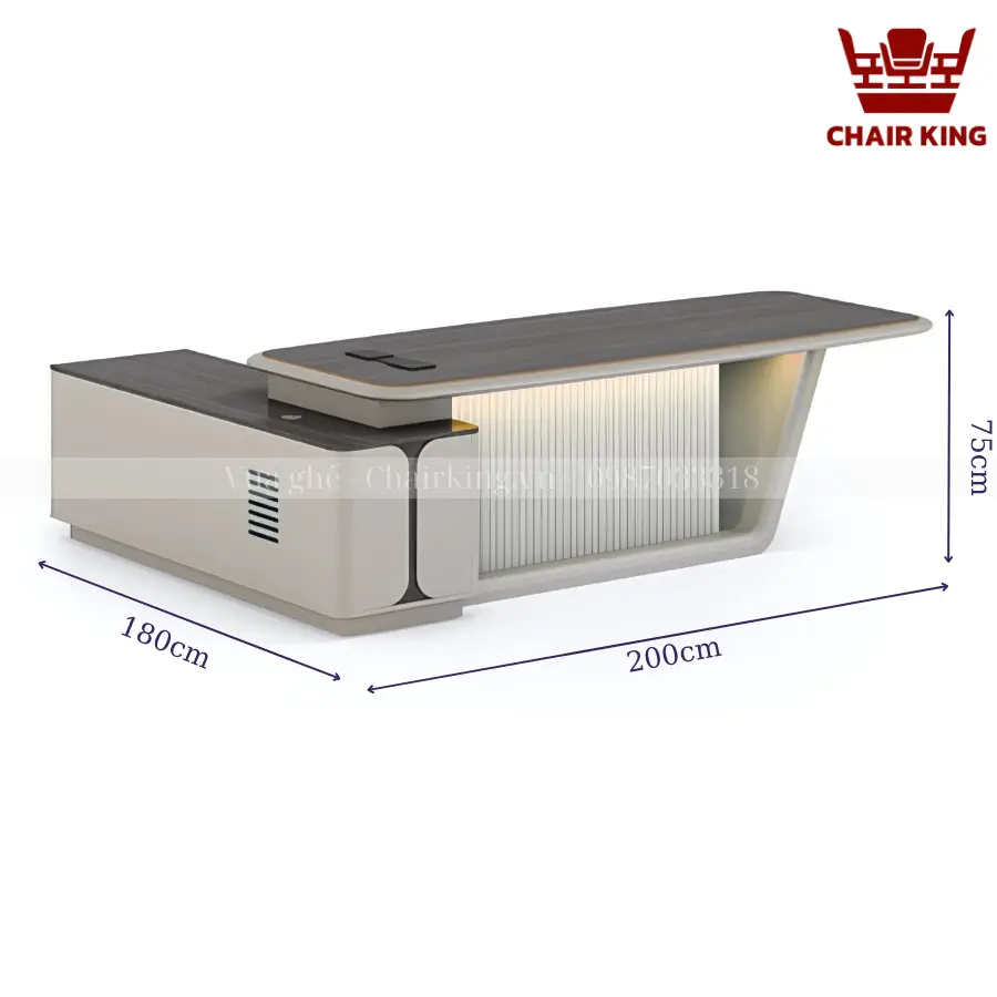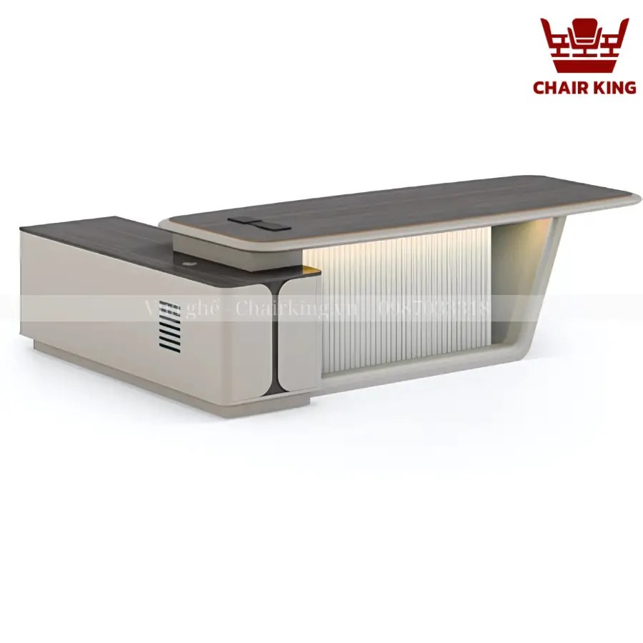 Bàn chủ tịch Chairking có màu sắc nổi bật, dễ dàng kết hợp cùng những không gian nội thất khác nhau, từ cổ điển đến hiện đại. Bên cạnh đó với sự đa dạng kích thước quý khách hàng dễ dàng chọn lựa được sản phẩm tương thích với diện tích, không gian làm việc của mình.
