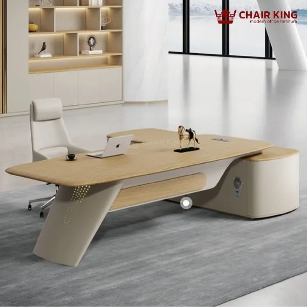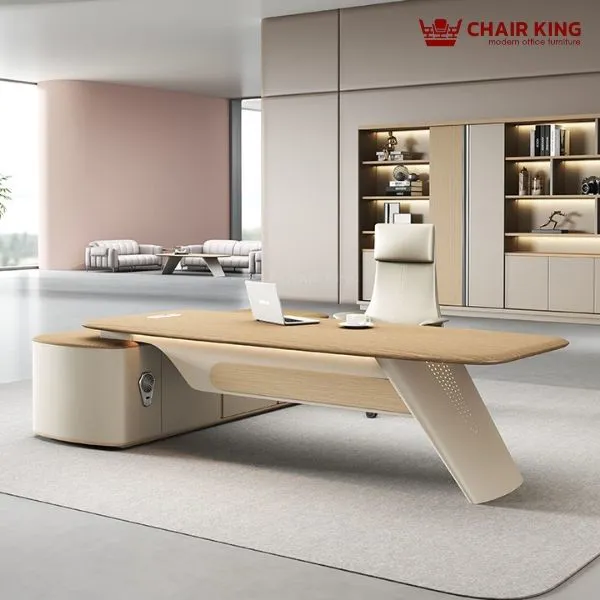 Trong không gian làm việc của nhà lãnh đạo, từng đường nét nội thất không chỉ phục vụ công năng mà còn là sự thể hiện rõ nét của phong cách, gu thẩm mỹ và bản lĩnh quản trị. Mẫu Bàn chủ tịch Chairking Inka BCTC-JK3020B là sản phẩm hội tụ đầy đủ những yếu tố ấy, từ thiết kế độc đáo, chất liệu cao cấp đến công năng vượt trội và ứng dụng linh hoạt trong nhiều không gian văn phòng hiện đại. Hãy cùng Vua ghế Chairking khám phá chi tiết về mẫu bàn lãnh đạo chất lượng này ngay nhé!