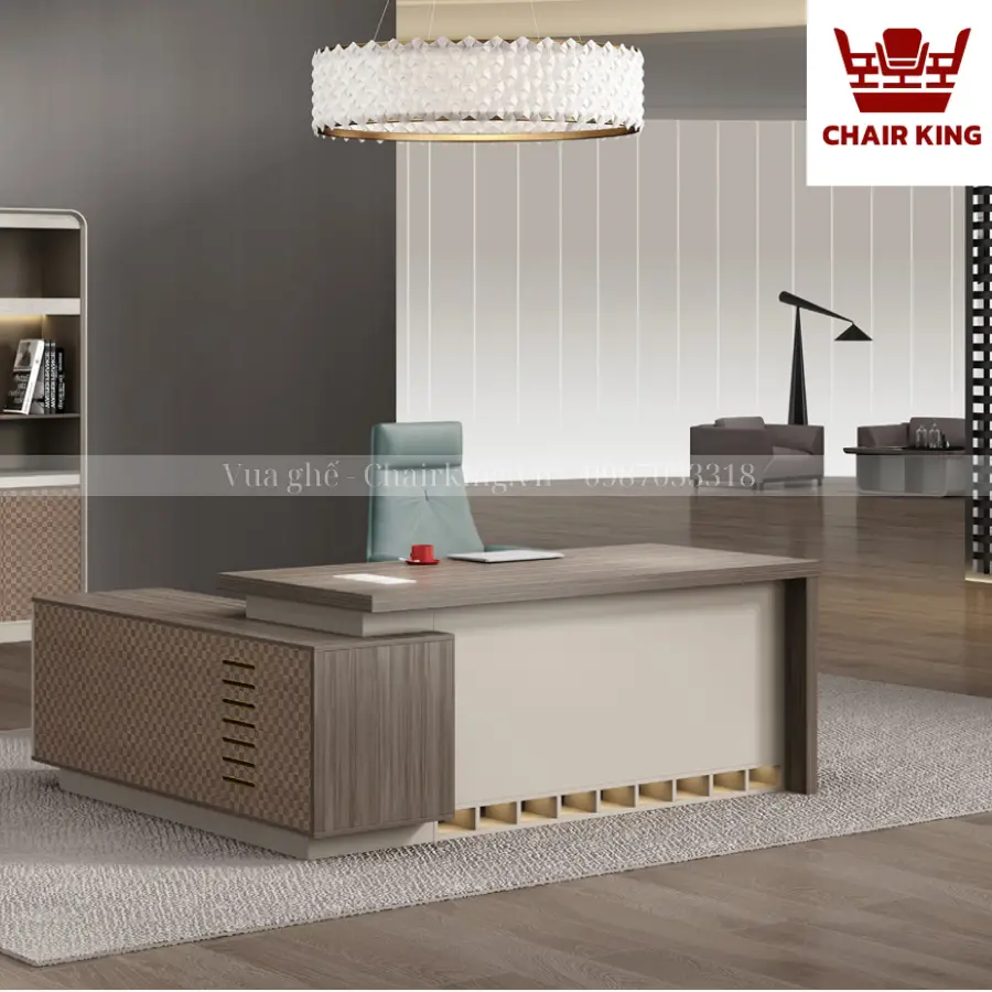 Bàn chủ tịch LV- BCTC – B616 là một chọn lựa khác biệt tôn lên toàn bộ khí chất, vị thế của người đứng đầu. Bàn có thiết kế sang trọng, tỉ mỉ trong từng đường nét, cuốn hút và ấn tượng của vẫn gỗ tinh tế từ Vua ghế Chairking.