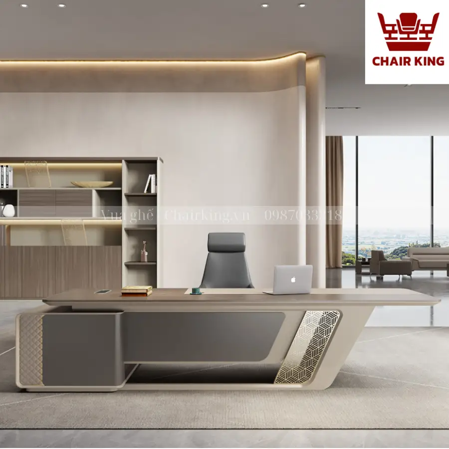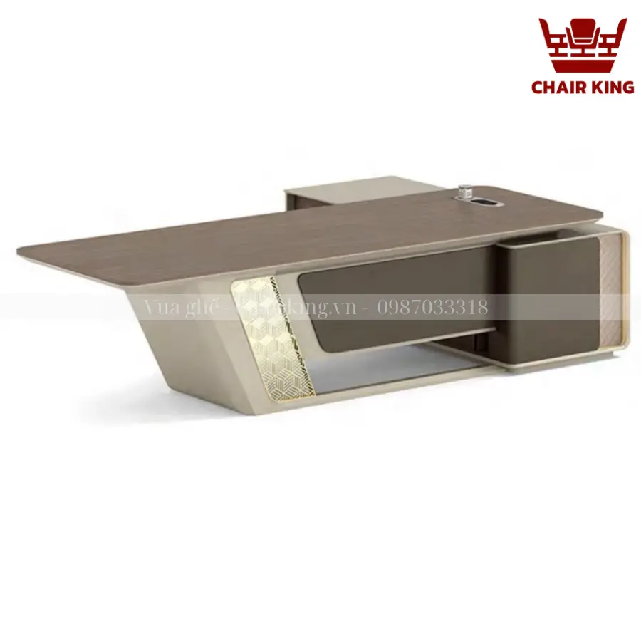Bàn chủ tịch LV- BCTC – B618 là một chọn lựa khác biệt tôn lên toàn bộ khí chất, vị thế của người đứng đầu. Bàn có thiết kế đẳng cấp, tỉ mỉ trong từng đường nét, cuốn hút và ấn tượng của vẫn gỗ tinh tế từ Vua ghế Chairking.