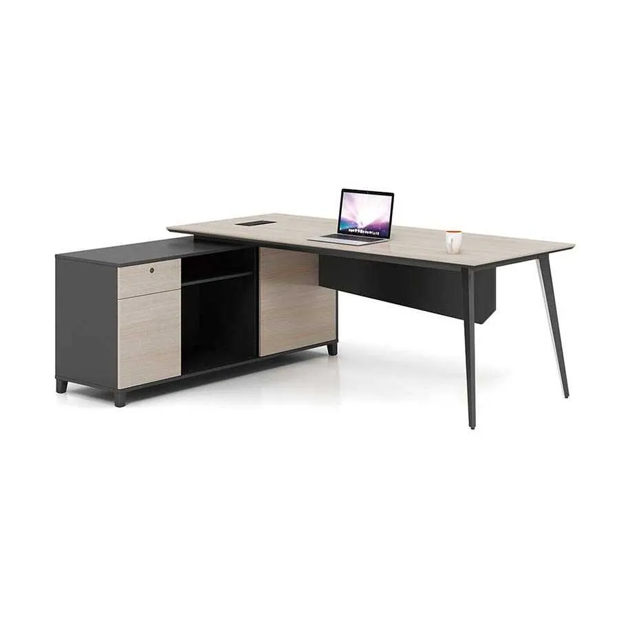 Ngoài ra, bàn còn đi kèm tủ phụ tiện dụng, hỗ trợ lưu trữ hồ sơ, tài liệu, vật dụng cá nhân. Điều này giúp tối ưu hóa diện tích và tạo nên một khu vực làm việc gọn gàng, khoa học, tăng hiệu quả xử lý công việc hằng ngày.
