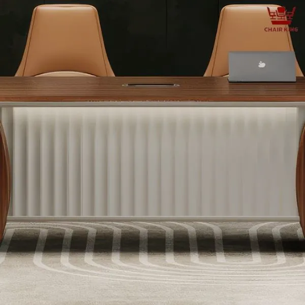 Yếm bàn tinh tế giúp bảo vệ sự riêng tư cho người tham dự, đồng thời tạo cảm giác vững chắc và trang trọng hơn cho tổng thể. Từng đường nét của sản phẩm được chăm chút kỹ lưỡng, thể hiện rõ phong cách thiết kế cao cấp, phù hợp với những văn phòng muốn khẳng định dấu ấn chuyên nghiệp và hiện đại.