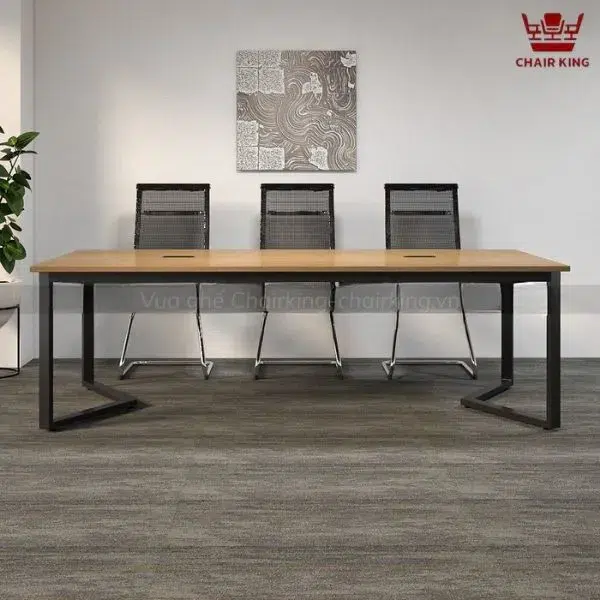 Màu sắc tự nhiên của gỗ vân kết hợp cùng khung chân mạnh mẽ đã tạo nên tổng thể hài hòa, vừa hiện đại vừa thanh lịch. Đồng thời, doanh nghiệp cũng có thể chọn màu sắc mặt bàn theo hình ảnh thực tế để phù hợp nhất với không gian làm việc.