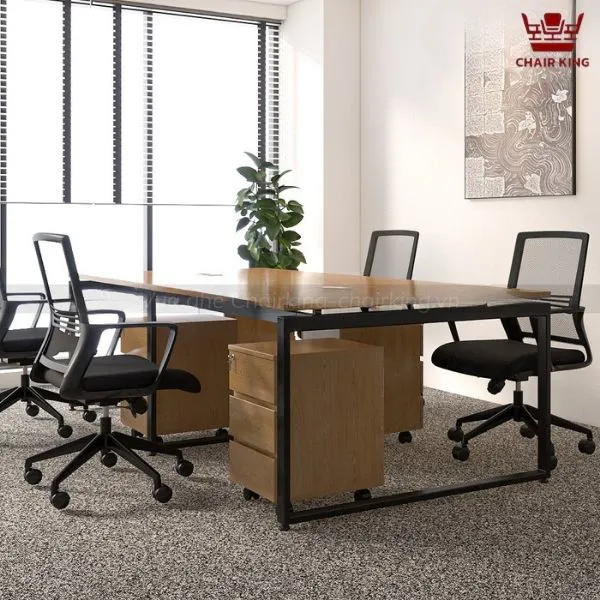 Một yếu tố quan trọng khác khiến bàn họp chân sắt chữ U BHC-U4D trở thành lựa chọn hoàn hảo là màu sắc hài hòa, dễ dàng phối hợp với các đồ nội thất khác trong phòng họp. Mặt bàn có màu vân gỗ tự nhiên, phủ lớp Melamine bóng sáng, tạo cảm giác vừa sang trọng vừa gần gũi.