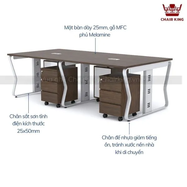 Chân bàn được uốn cong mềm mại, tạo sự thanh thoát và giảm bớt sự cứng nhắc vốn có ở các mẫu bàn chân sắt truyền thống. Kết hợp cùng mặt bàn gỗ vân đẹp mắt, tổng thể trở nên tinh tế, hiện đại và đầy cuốn hút. Đây chính là điểm cộng lớn, giúp sản phẩm nhanh chóng trở thành xu hướng trong các thiết kế nội thất văn phòng.