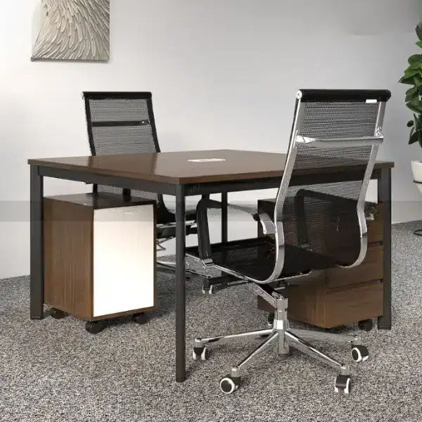 Kết hợp chân hợp kim mạ PVD, mặt đá nhân tạo hoặc veneer gỗ tự nhiên, đường nét sắc sảo. Tích hợp ngăn chìm, cổng sạc USB – tạo vẻ chuyên nghiệp và tiện nghi cho lãnh đạo.