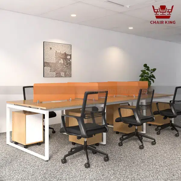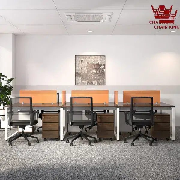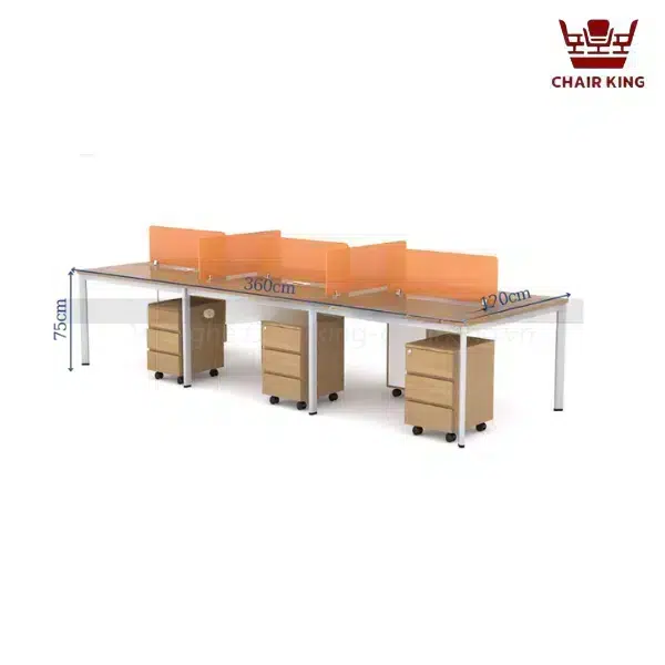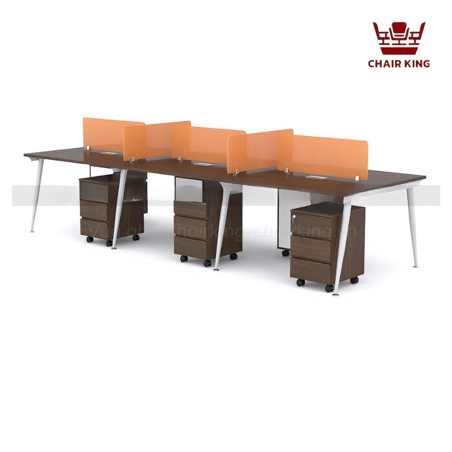 Thiết kế bàn dài 1.6 m – 2 m ghép nối lại dễ dàng tạo thành bàn 6 đến 8 người. Thích hợp không gian coworking, công ty nhỏ; giúp tiết kiệm diện tích, dễ thay đổi layout làm việc linh hoạt.