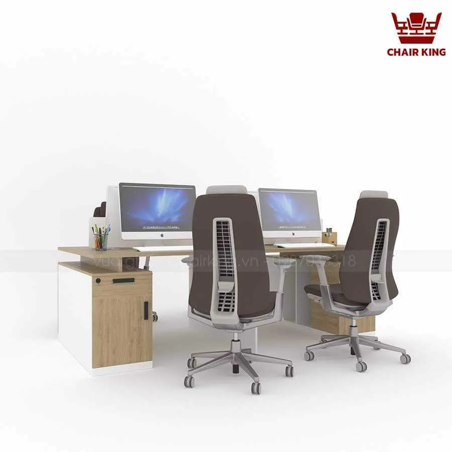 Tối ưu không gian: Việc thay thế chân bàn bằng tủ chứa giúp tận dụng tối đa diện tích, mang đến sự tiện lợi mà không làm văn phòng trở nên chật hẹp.