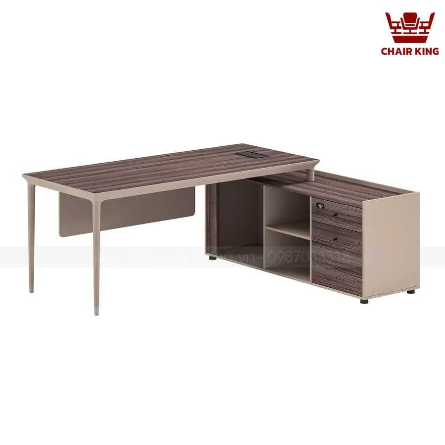 - Tối ưu công năng, nâng cao hiệu quả công việc: Với các tính năng tích hợp như hệ thống đi dây, ổ cắm USB, kệ sách, tủ kéo đựng tài liệu, giúp công việc diễn ra thuận lợi, không bị gián đoạn.