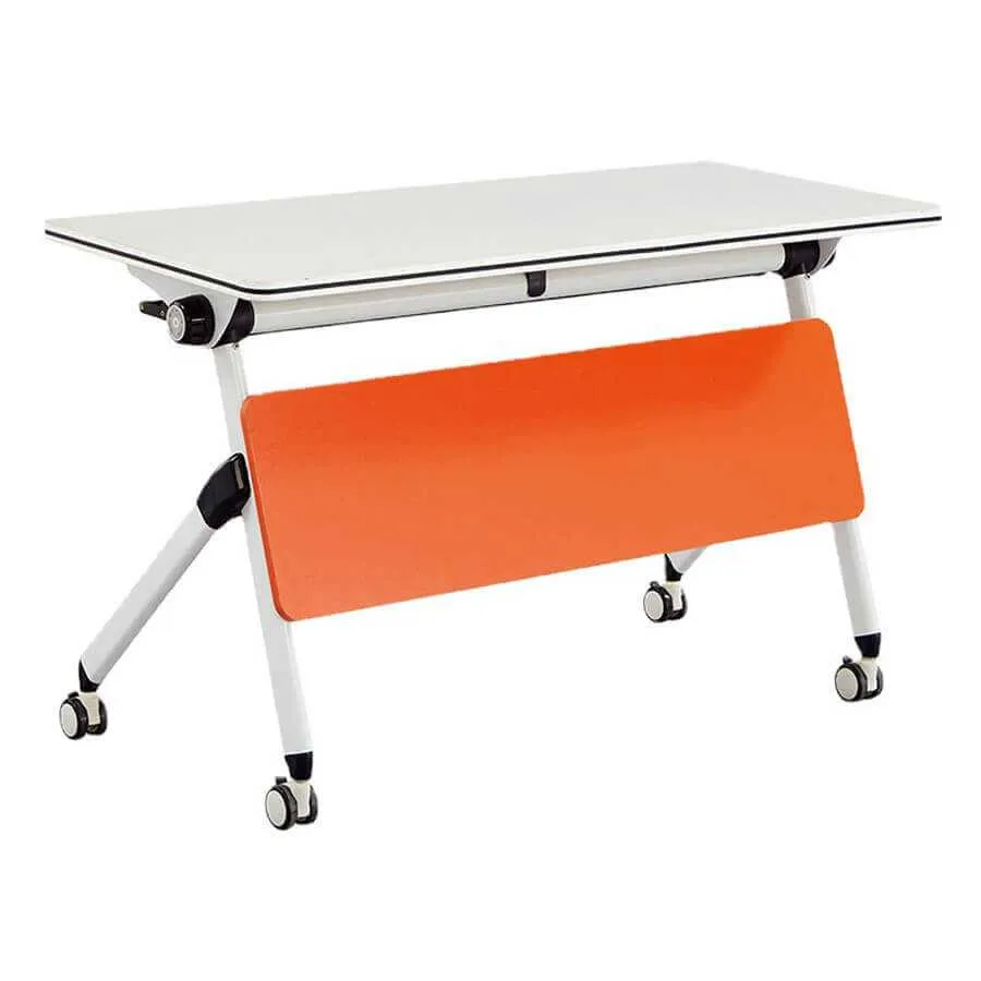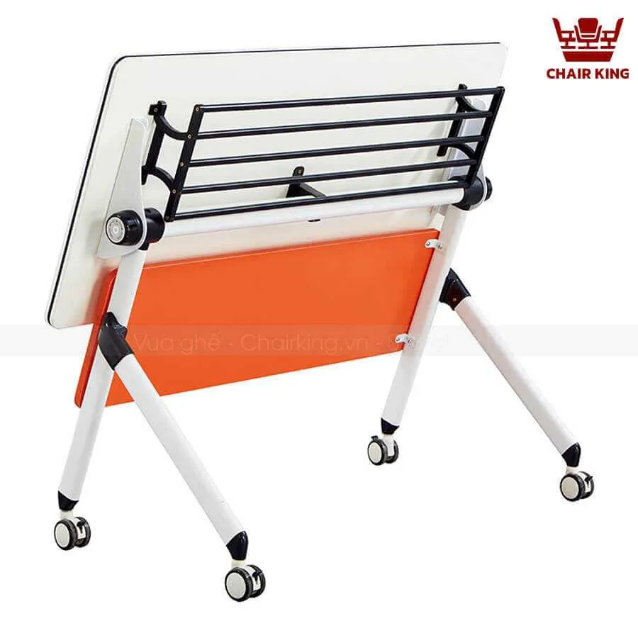 Một trong những ưu điểm nổi bật của mẫu bàn này chính là khả năng gấp gọn thông minh. Khi không sử dụng, mặt bàn có thể được gập lại một cách nhanh chóng, giúp tiết kiệm diện tích tối đa. Đây là một giải pháp tuyệt vời cho những không gian cần sự linh hoạt và thay đổi bố cục thường xuyên. Hệ thống bánh xe di chuyển cho phép người dùng dễ dàng thay đổi vị trí mà không cần mất nhiều công sức.