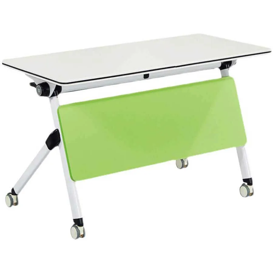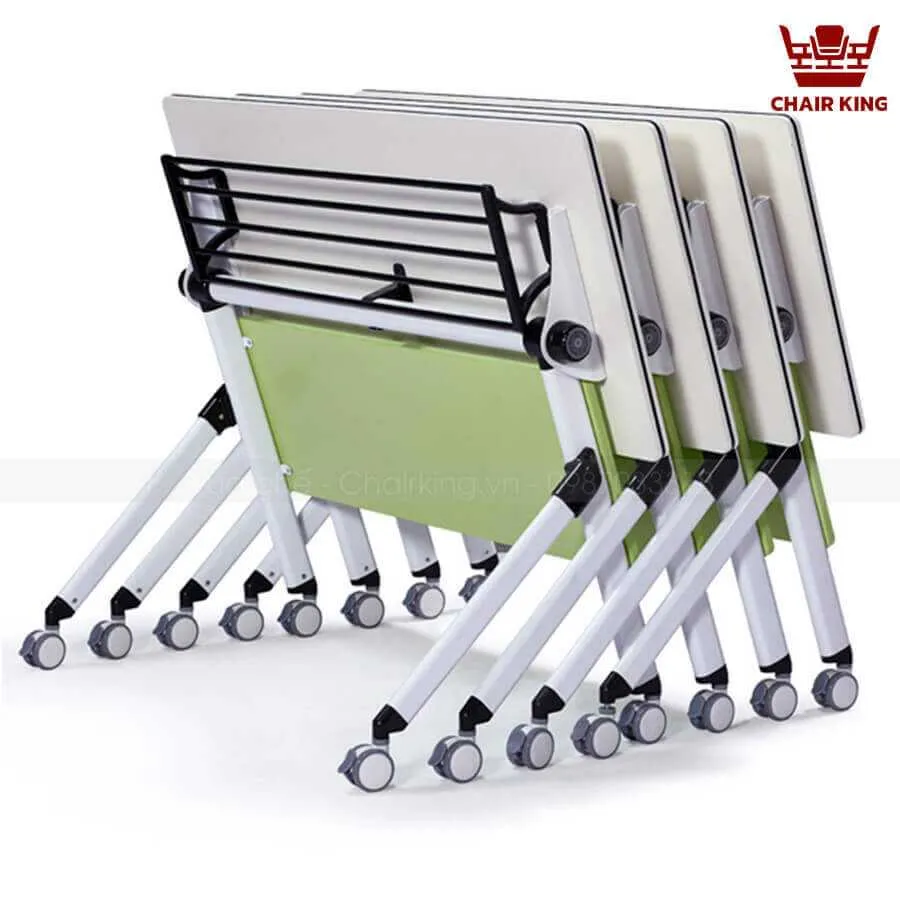 Một trong những ưu điểm nổi bật của mẫu bàn này chính là khả năng gấp gọn thông minh. Khi không sử dụng, mặt bàn có thể được gập lại một cách nhanh chóng, giúp tiết kiệm diện tích tối đa. Đây là một giải pháp tuyệt vời cho những không gian cần sự linh hoạt và thay đổi bố cục thường xuyên. Hệ thống bánh xe di chuyển cho phép người dùng dễ dàng thay đổi vị trí mà không cần mất nhiều công sức.