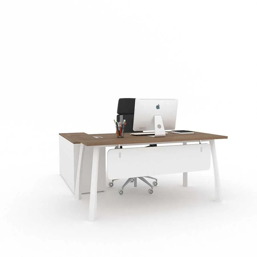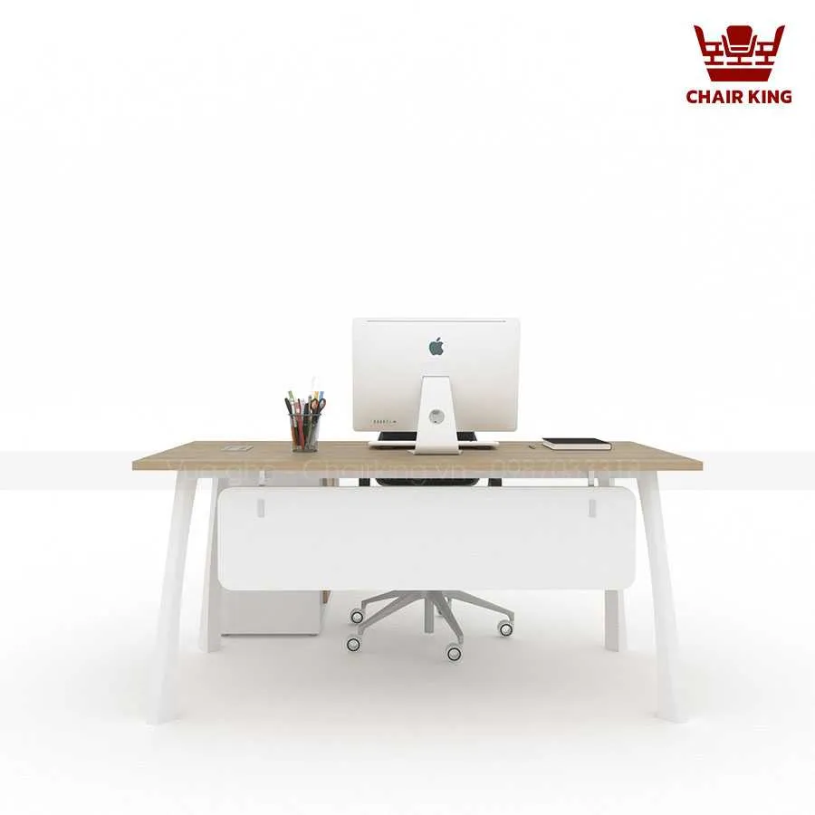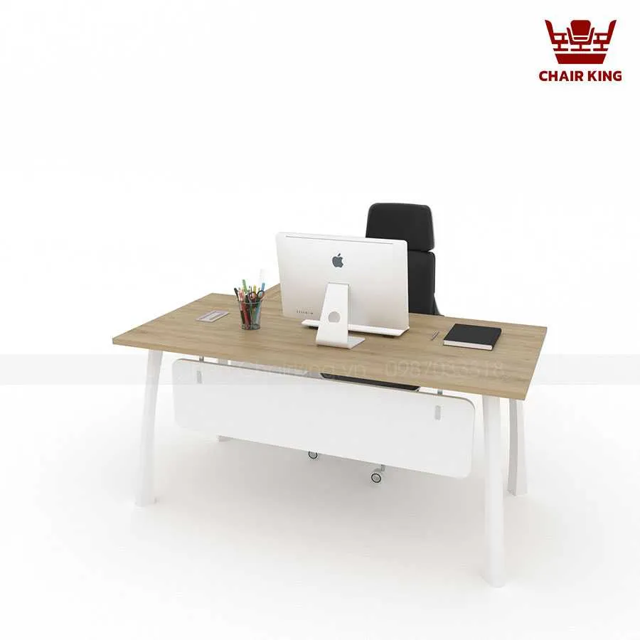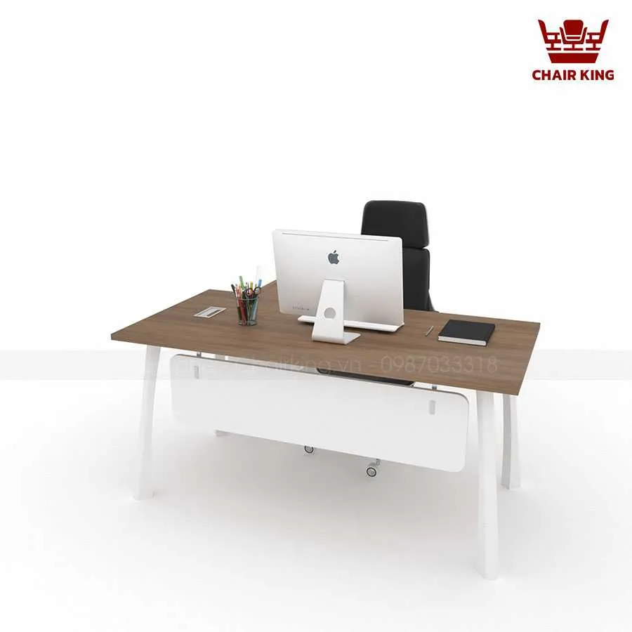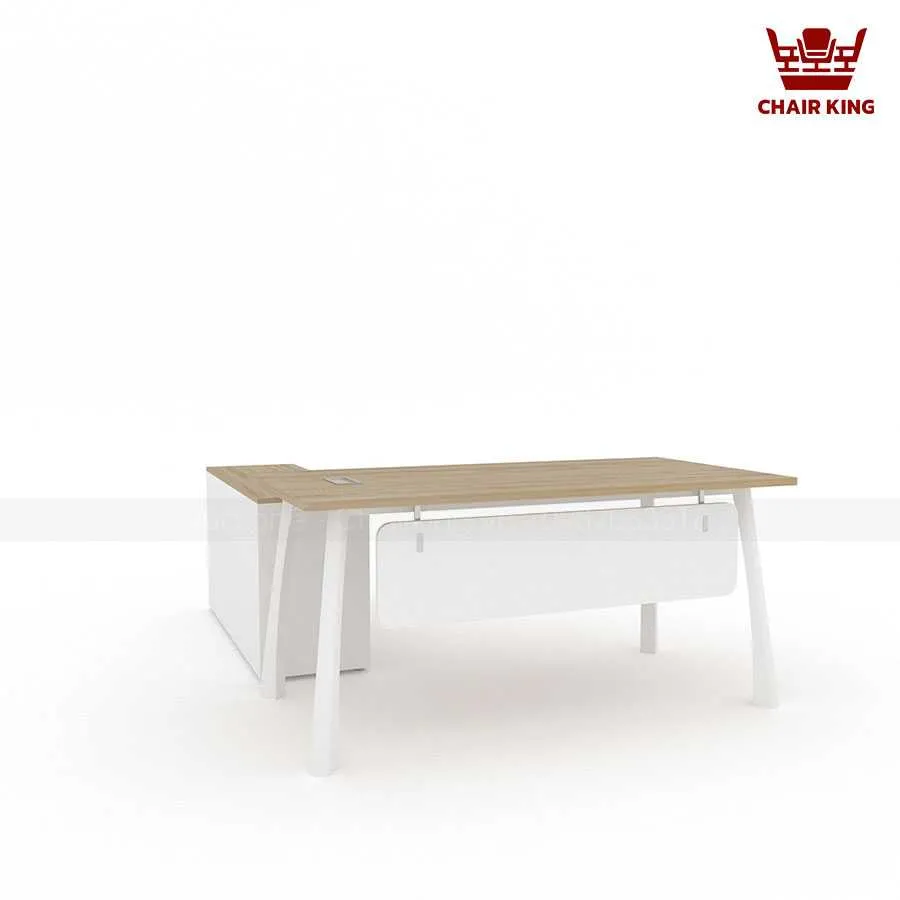 Điểm nổi bật đầu tiên của Bàn trưởng phòng Takya BTP-07 chính là thiết kế mang đậm hơi thở hiện đại, tối giản nhưng vẫn giữ được vẻ sang trọng. Mặt bàn được tạo hình vuông vắn, cân đối. Các đường nét thanh thoát, kết hợp tông màu gỗ trầm hoặc nâu sáng, giúp sản phẩm phù hợp với nhiều phong cách văn phòng khác nhau. Kích thước bàn được tính toán kỹ lưỡng, vừa đảm bảo sự rộng rãi để sắp xếp hồ sơ, máy tính và các vật dụng cá nhân, vừa tiết kiệm diện tích, mang đến sự thông thoáng cho căn phòng.