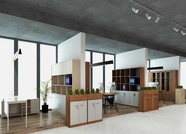 Sự có mặt của tủ tài liệu, cùng bàn ghế làm việc tạo nên không...