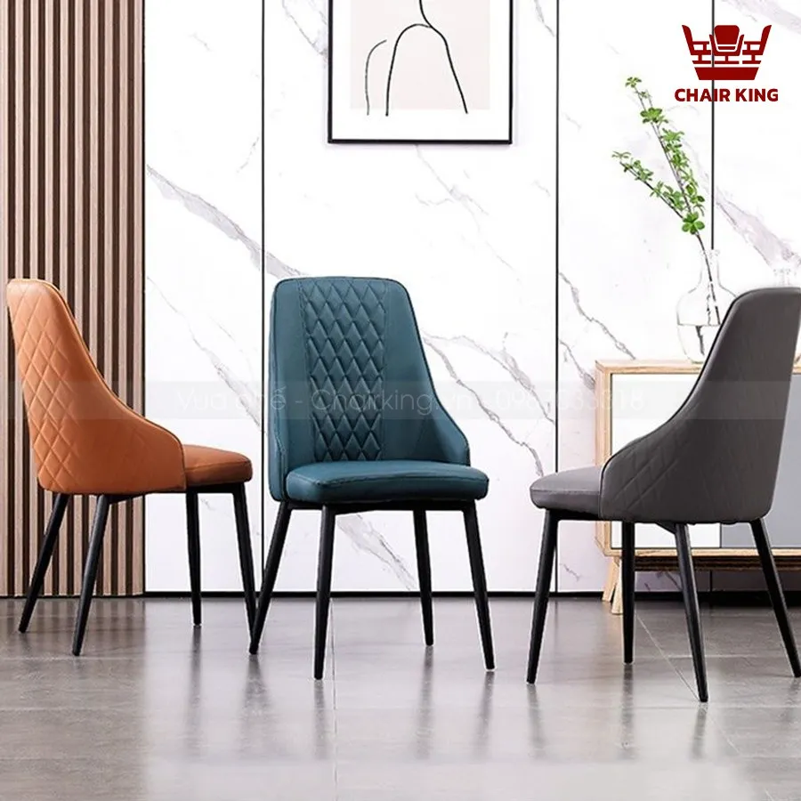 | Chất Liệu | Lưng ghế được thiết kế cao mang lại sự thoải mái cho người sử dụng, làm giảm áp lực lên lưng, vai cổ. Đệm ghế bằng phẳng, thiết kế đơn giản đem lại sự thoải mái khi sử dụng. Mặt đệm bọc da PU cao cấp tôn lên vẻ sang trọng, độ bền lâu, chống nước và trầy xước. Chân sắt sơn tĩnh điện thẩm mỹ, sự bền bỉ bỉ cao, khả năng chịu lực tốt Nhập khẩu nguyên chiếc bởi Chairking |