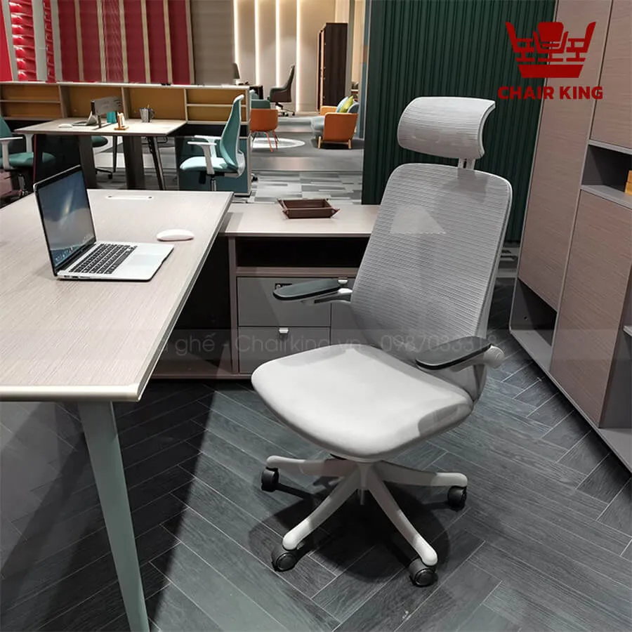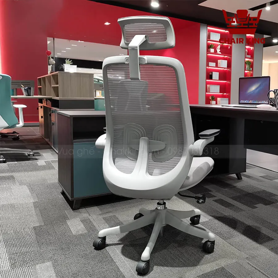 Tựa đầu có thể nâng và xoay, đáp ứng nhiều nhu cầu sử dụng khác nhau. Thiết kế vừa vặn với cổ, giúp giảm áp lực lên phần đầu, tăng hiệu quả làm việc.
