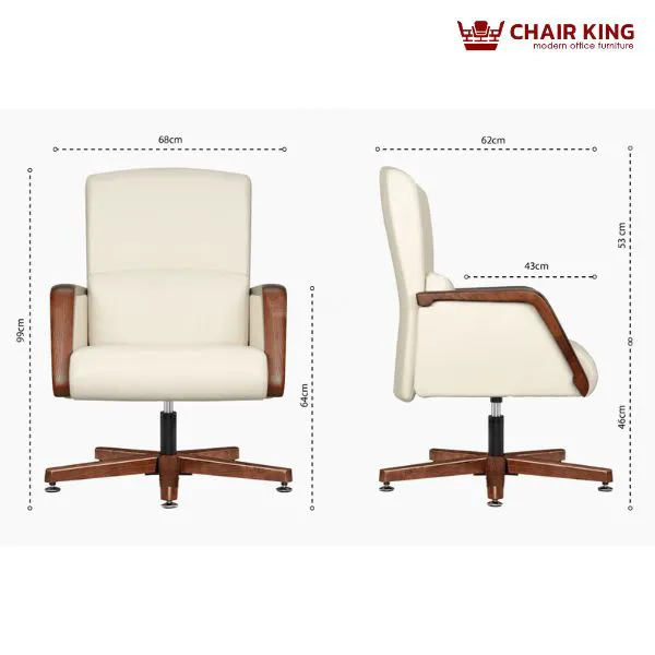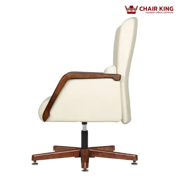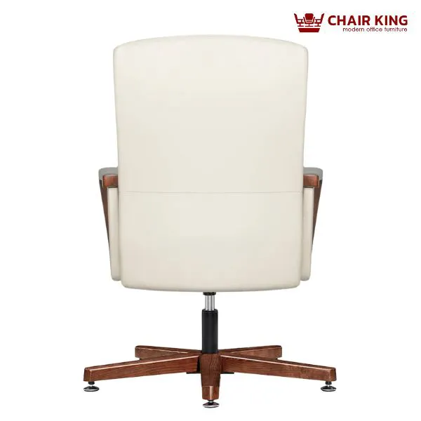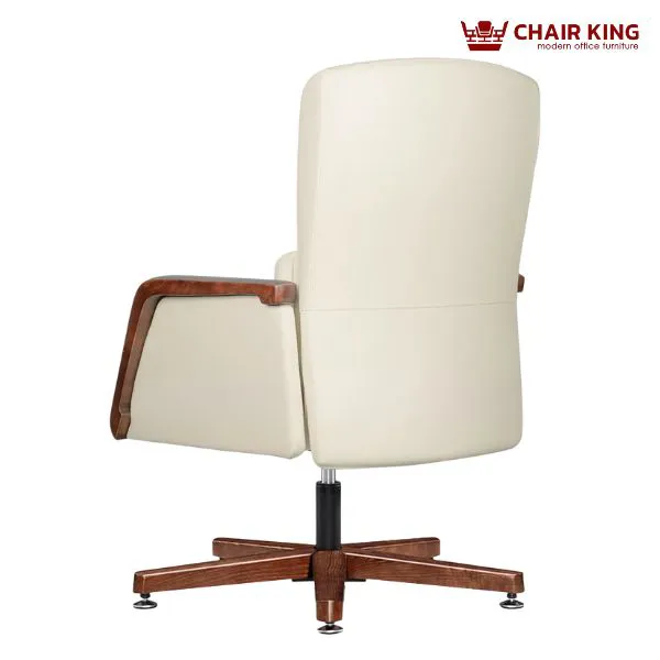 Ghế da cao cấp Chairking GDC-C1521 mang dáng dấp bề thế, lịch lãm với phần lưng và đệm ngồi được thiết kế liền khối, tạo thành một thể thống nhất vững chãi. Tổng thể ghế là sự kết hợp hài hòa giữa tone màu kem thanh lịch và khung gỗ ốp nâu bóng, tạo nên vẻ ngoài tinh tế và đẳng cấp. Các chi tiết tay vịn, chân ghế và khung gỗ được gia công tỉ mỉ, uốn cong nhẹ nhàng, vừa mềm mại về thị giác vừa tạo cảm giác thoải mái khi sử dụng. Kiểu dáng ghế phù hợp với không gian phòng giám đốc, chủ tịch hay các phòng họp cấp cao yêu cầu tính thẩm mỹ và sự sang trọng.