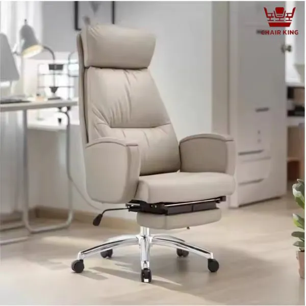 Ngoài ra, ghế còn có khả năng nâng lên – hạ xuống linh hoạt, phù hợp với nhiều chiều cao bàn làm việc khác nhau. Cơ chế điều chỉnh bằng cần gạt thông minh giúp việc thay đổi độ cao, độ ngả trở nên nhanh chóng, đơn giản và tiện lợi. Đây là sự kết hợp hoàn hảo giữa công năng làm việc và trải nghiệm thư giãn, biến chiếc ghế trở thành “trợ thủ đắc lực” cho mọi nhà lãnh đạo.