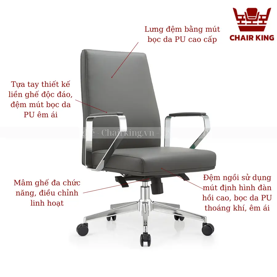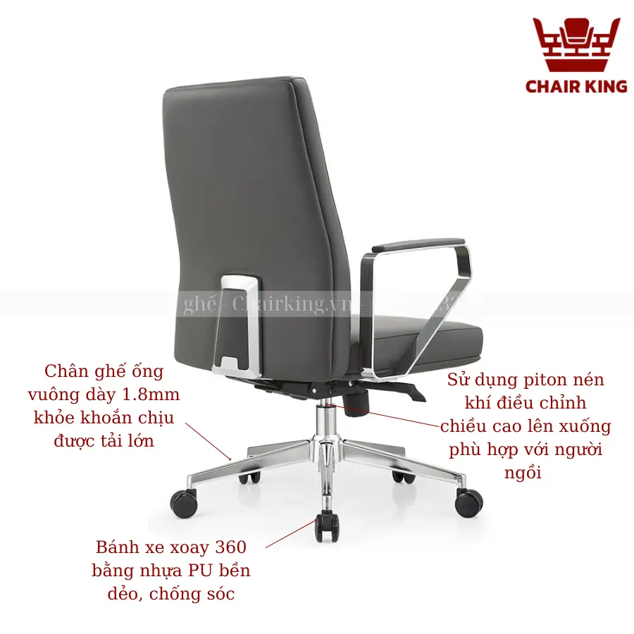 Ghế Lãnh Đạo Chairking GLDC-6802B không những đẹp mắt mà còn được trang bị nhiều tính năng tiện ích. Ghế có khả năng điều chỉnh chiều cao linh hoạt, giúp người sử dụng dễ dàng tìm được vị trí ngồi tương thích nhất. Chức năng xoay 360 độ cũng giúp bạn dễ dàng di chuyển và tương tác với đồng nghiệp xung quanh mà không cần phải đứng dậy.