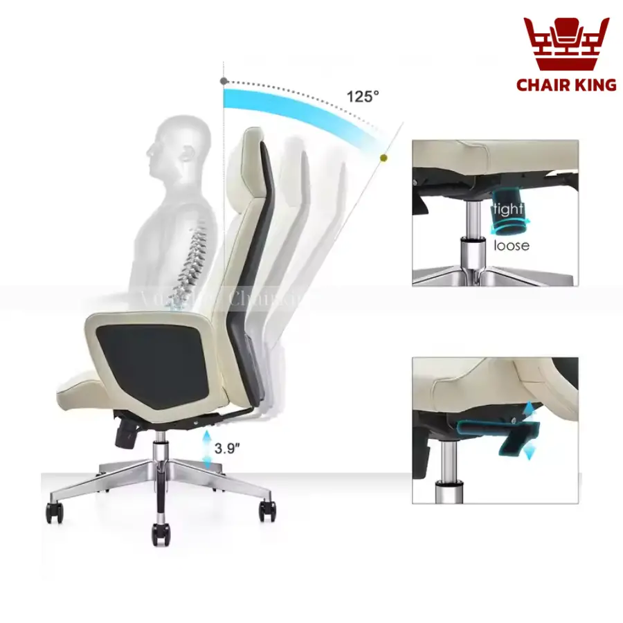 Ghế Lãnh Đạo Chairking GLDC-6953A nổi bật với thiết kế hiện đại, tinh tế và đầy phong cách. Với lớp bọc da cao cấp, ghế không những tạo cảm giác mềm mại mà còn thể hiện sự đẳng cấp và đẳng cấp. Được thiết kế với phần đệm ngồi và tựa lưng êm ái, mang đến sự thư thái tối đa cho người sử dụng. Lớp đệm êm ái giúp hỗ trợ Tốt với xướng sống, giảm bớt áp lực lên cơ thể. Bạn có thể dễ dàng ngồi hoặc nằm thư giãn trong nhiều giờ mà không cảm thấy mệt mỏi. Đây chính là chọn lựa hợp lý cho những người thường xuyên làm việc lâu giờ hoặc cần một chỗ ngồi thư thái để thư giãn.