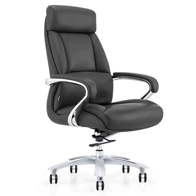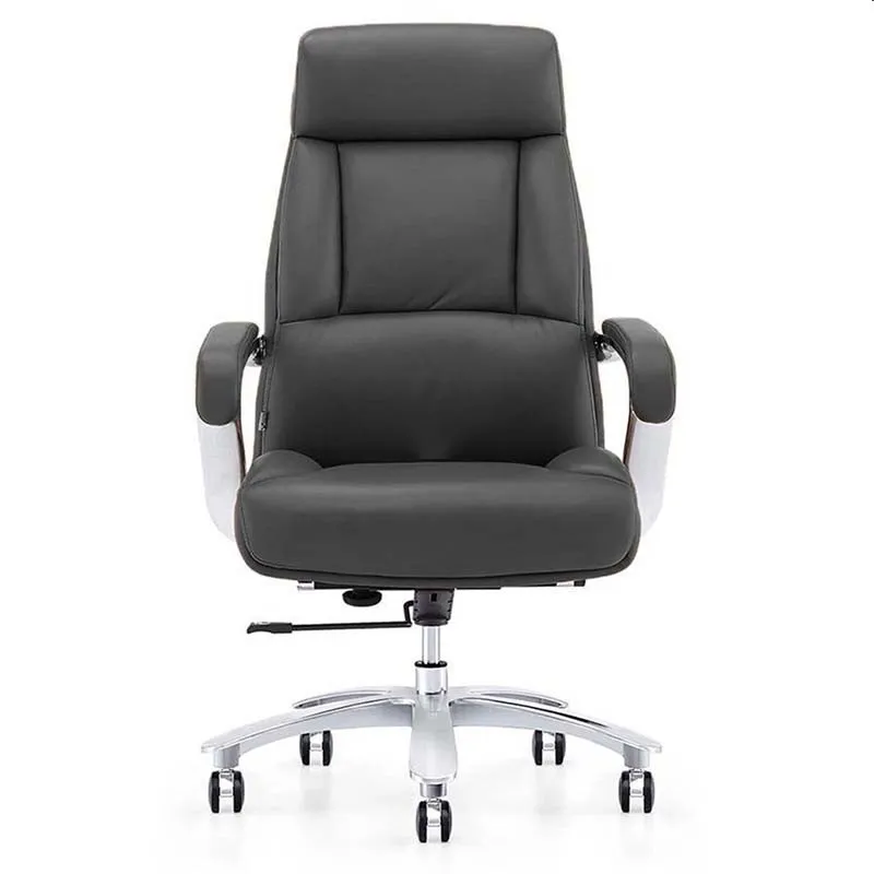 Khung tay hợp kim nhôm bọc da bò mềm mại, thiết kế phù hợp với chiều dài cánh tay người dùng giúp làm việc thoải mái. Phần đầu ghế được thiết kế cao, tạo sự nâng đỡ tuyệt vời cho cổ và vai gáy, giúp người dùng có thể ngả lưng thư giãn ngay tại văn phòng sau những giờ làm việc căng thẳng.