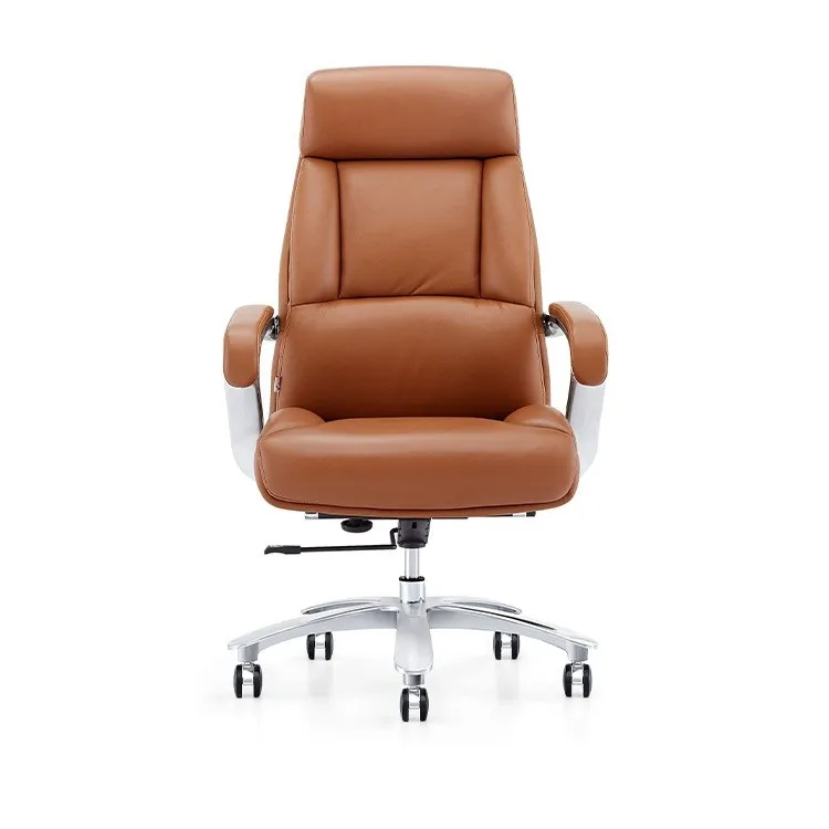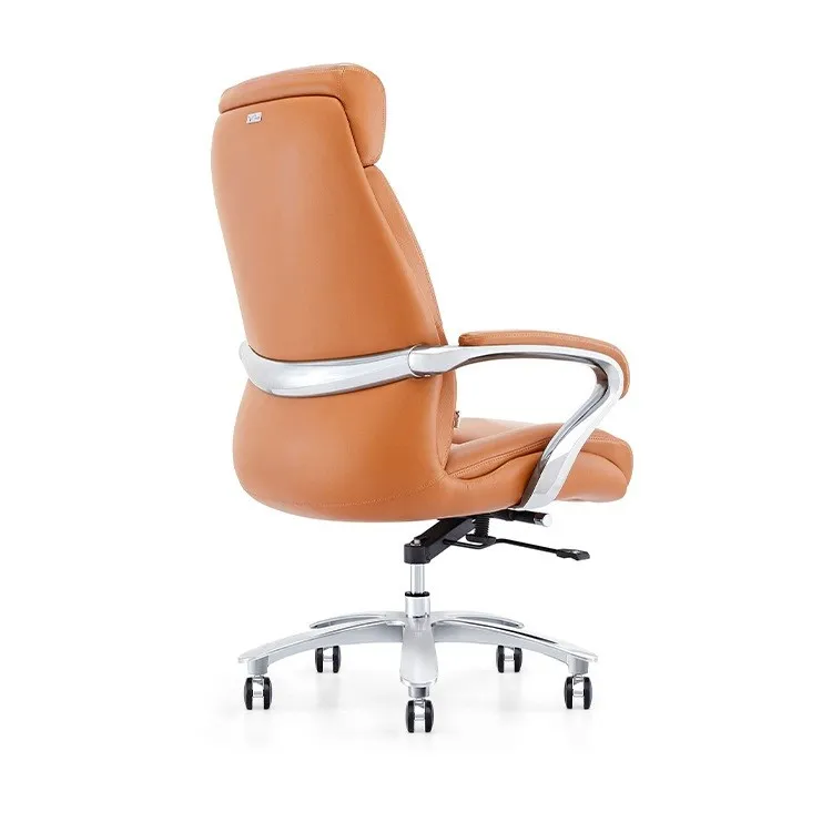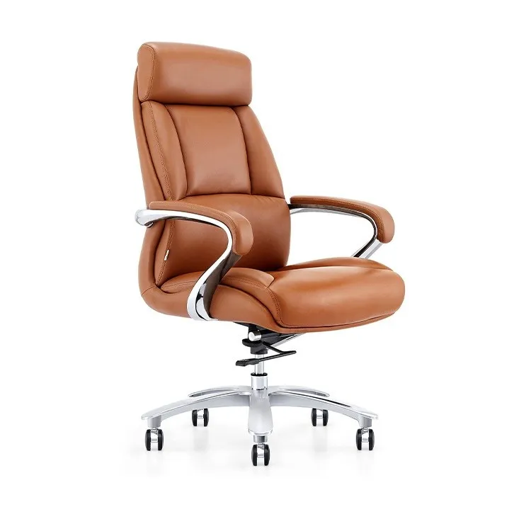 Khung tay hợp kim nhôm bọc da bò mềm mại, thiết kế tương thích với chiều dài cánh tay người dùng giúp làm việc thư thái. Phần đầu ghế được thiết kế cao, tạo sự nâng đỡ tuyệt vời cho cổ và vai gáy, giúp người dùng có thể ngả lưng thư giãn ngay tại văn phòng sau những giờ làm việc căng thẳng. Thiết kế này không những đem lại sự tiện nghi mà còn thể hiện phong thái đẳng cấp, quyền uy của người lãnh đạo.