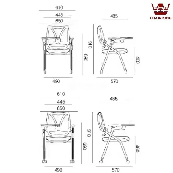 Khi không sử dụng, bàn có thể gập lại gọn gàng sát thân ghế, không chiếm diện tích và không gây vướng víu. Việc tích hợp bàn viết trực tiếp vào thân ghế giúp tiết kiệm chi phí và không gian so với việc bố trí bàn rời, đồng thời tăng tính linh hoạt cho không gian.
