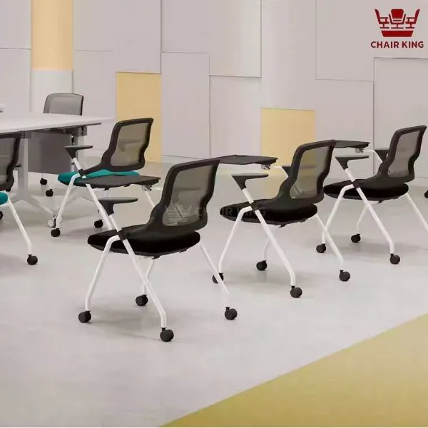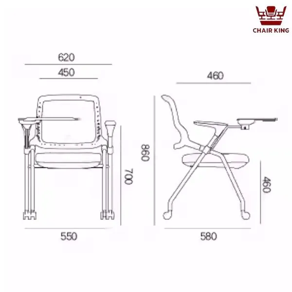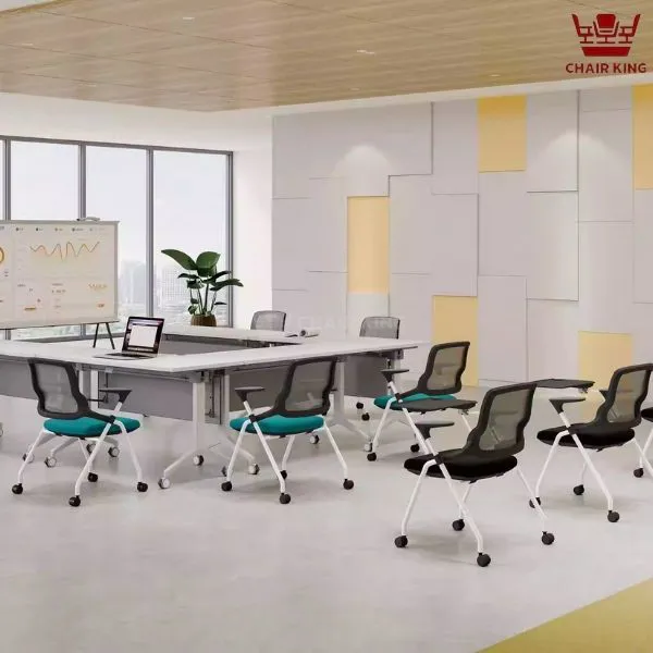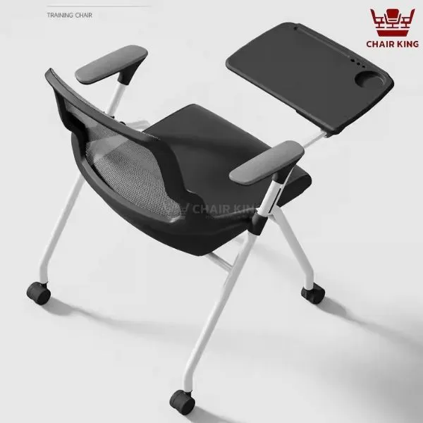 Phần bàn có thể gập mở linh hoạt chỉ bằng một thao tác đơn giản, giúp người dùng dễ dàng ghi chép, đặt laptop, tablet hay tài liệu trong quá trình học tập, đào tạo hoặc thảo luận nhóm. Khi không sử dụng, bàn có thể gập lại gọn gàng sát thân ghế, không chiếm diện tích và không gây vướng víu.