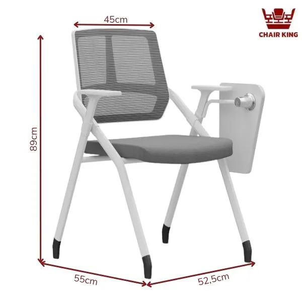 Đặc biệt, ghế được tích hợp bàn viết tiện dụng, làm từ nhựa ABS cao cấp, loại vật liệu nổi tiếng với độ bền, khả năng chịu lực cao và chống trầy xước tốt. Bàn viết có thể gập gọn khi không dùng, giúp tiết kiệm không gian và tạo sự linh hoạt trong bố trí chỗ ngồi. Đây là chi tiết vô cùng quan trọng trong những lớp học, hội thảo hoặc phòng họp cần ghi chép thường xuyên.