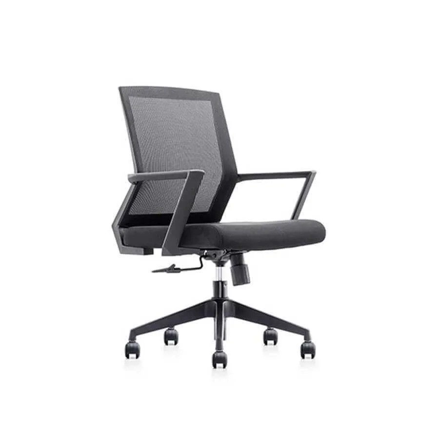 Lưng ghế được làm bằng lưới cao cấp, thoáng khí, tích nhiệt ít hơn, đem lại cảm giác dễ chịu ngay cả khi ngồi làm việc trong thời gian dài. Phần đệm ngồi được bọc vải dày dặn, êm ái với tone màu đen trẻ trung, dễ dàng tương thích với các phong cách nội thất văn phòng khác nhau.