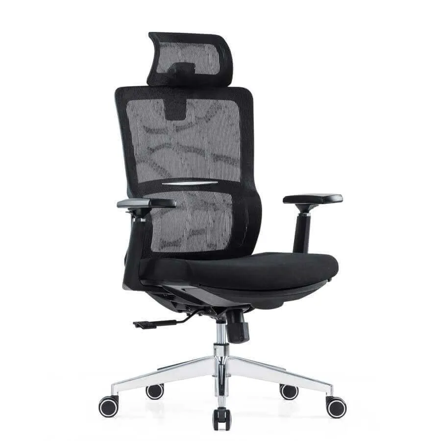 Mẫu ghế này không chỉ sở hữu thiết kế hiện đại mà còn nâng đỡ tốt cho cơ thể người dùng. Mẫu ghế này là lựa chọn lý tưởng cho nhiều không gian làm việc khác nhau như văn phòng công ty, phòng họp. Chân hợp kim nhôm sự bền bỉ cao với kích thước 35cm, đạt thử nghiệm sự bền bỉ với áp suất tĩnh trên 1500kg, cao hơn tiêu chuẩn thử nghiệm BIFMA. Bánh xe PU đen kích thước 60mm, có thể xoay chuyển nhịp nhàng theo nhiều góc độ khác nhau.