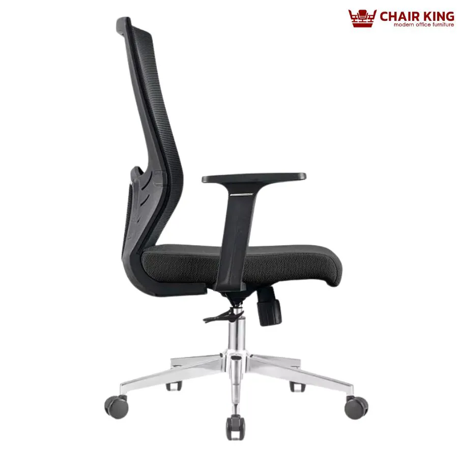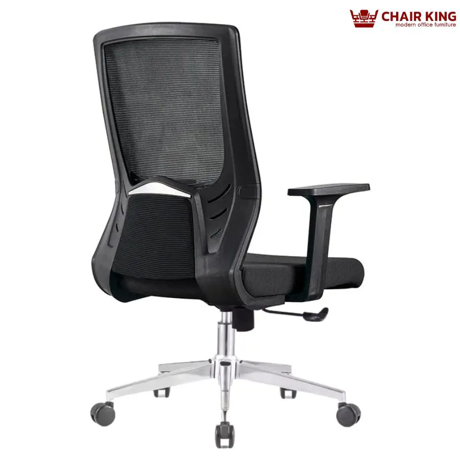 Lưng ghế được làm bằng lưới cao cấp, thoáng khí, tích nhiệt ít hơn, đem lại cảm giác dễ chịu ngay cả khi ngồi làm việc trong thời gian dài. Phần đệm ngồi được bọc vải dày dặn, êm ái với tone màu đen trẻ trung, dễ dàng tương thích với các phong cách nội thất văn phòng khác nhau.