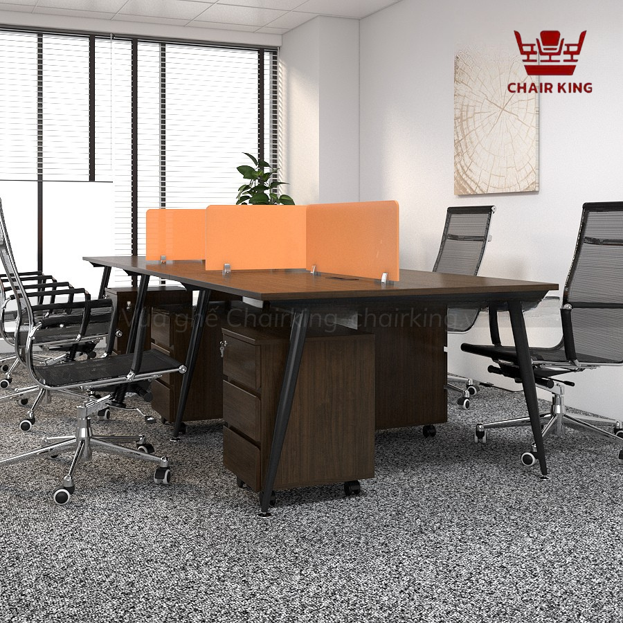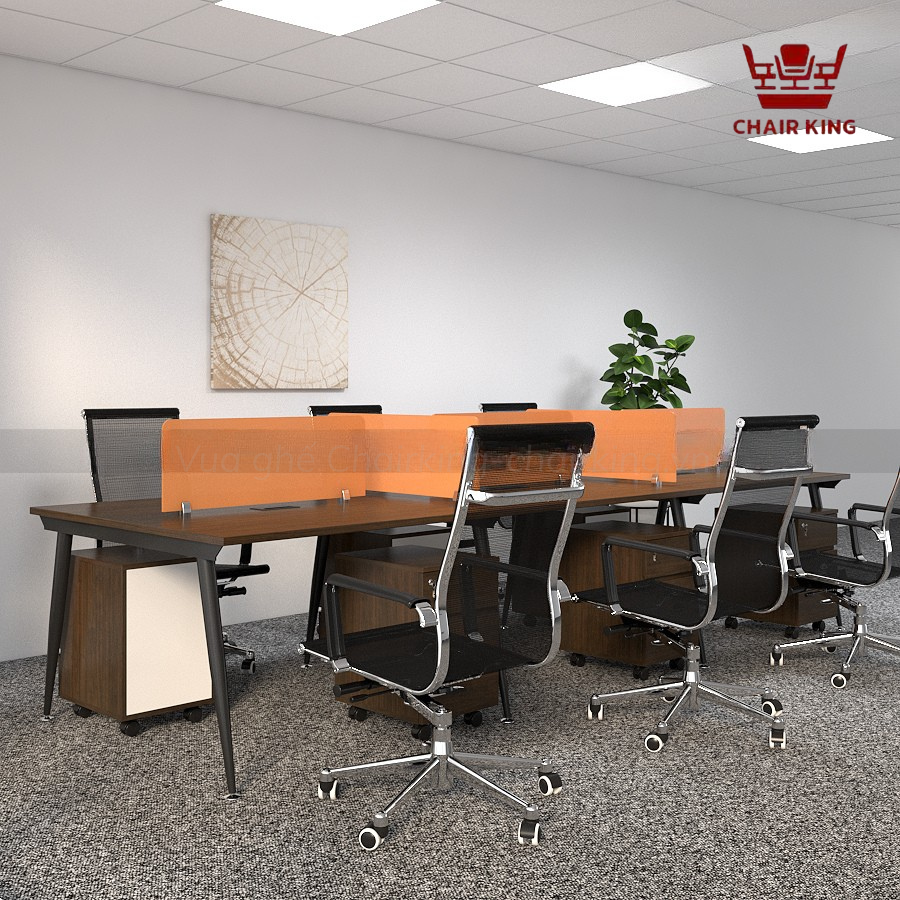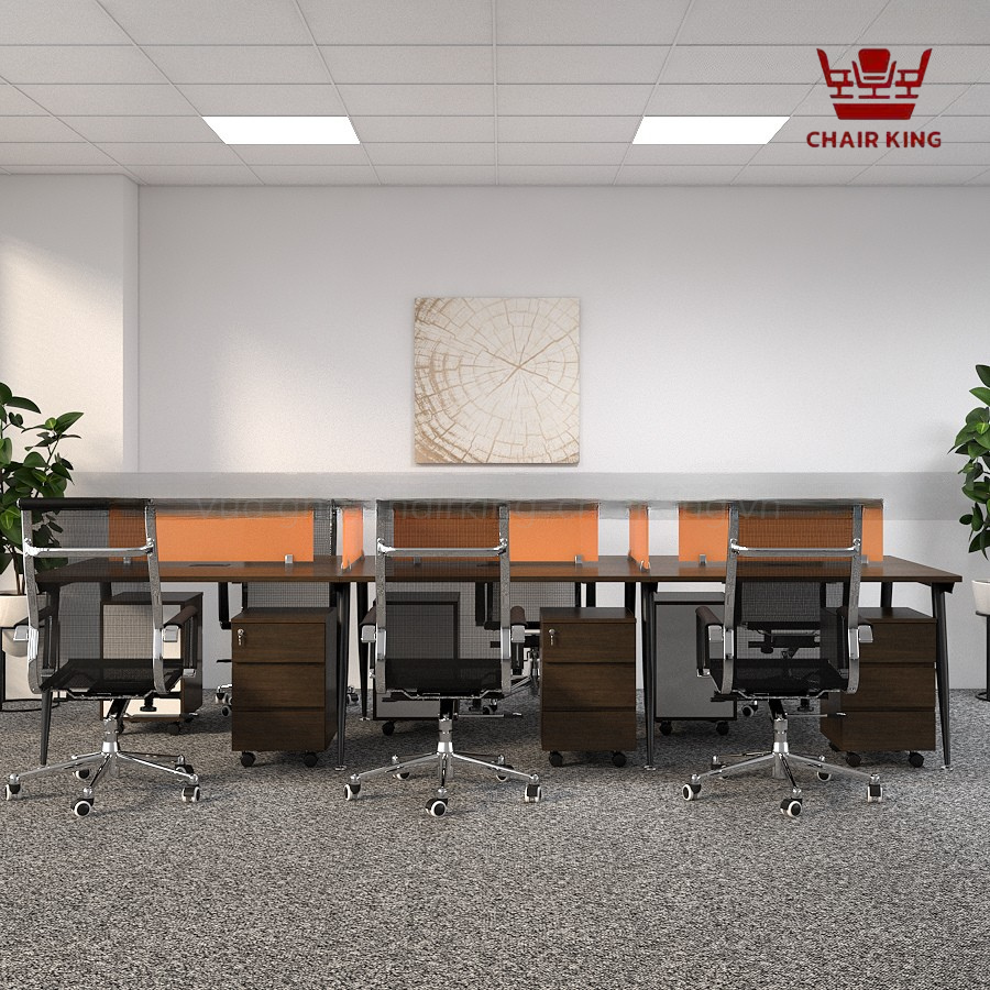 Cụm bàn nhóm 6 người chân côn Ashley MDC-C6D được thiết kế với kiểu dáng tối giản nhưng vô cùng tinh tế. Bàn được chia thành 6 vị trí ngồi riêng biệt, mỗi người đều có không gian riêng để làm việc nhưng vẫn đảm bảo sự kết nối chặt chẽ giữa các thành viên trong nhóm. Thiết kế module này giúp tối ưu hóa diện tích văn phòng, đồng thời tạo không gian rộng rãi, thoải mái cho mỗi cá nhân mà không gây cảm giác chật chội.
