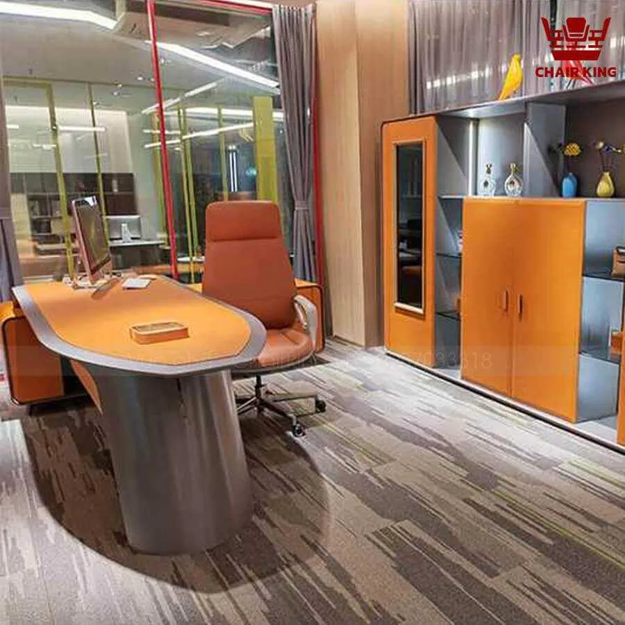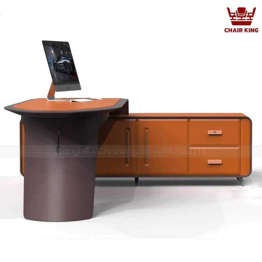Tủ phụ bên cạnh bàn làm việc là nơi hoàn hảo cho những cuốn sách và tài liệu của bạn. Thiết kế chữ L giúp tài liệu của bạn lúc nào cũng trong tầm với. Có 1 khoang chuyên dụng để đặt cây máy tính và ngăn kéo để đặt các đồ dùng văn phòng khác. Với chất liệu Da làm chủ đạo, nsx nhắm tới đối tượng là các vị chủ tịch, sếp lớn trong công ty. Kiểu dáng độc áo kết hợp tủ phụ và khe lắp đặt dây điện thông minh. Đây chắc chắc chắn sẽ là siêu phẩm bạn đang tìm kiếm.