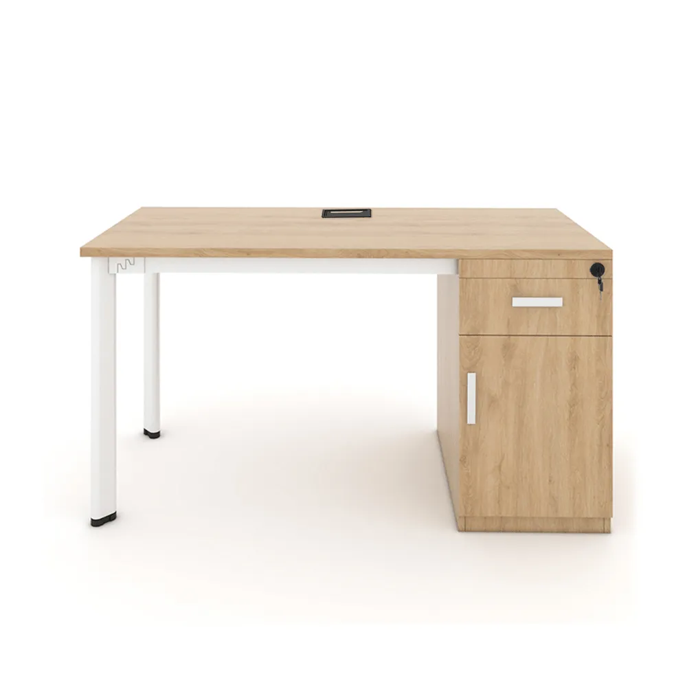 Bàn có thêm tủ phụ tiện dụng. Tủ phụ gắn liền với bàn, thay thế một phân chân bàn giúp tăng sự chắc chắn. Mở rộng không gian lưu trữ giúp sắp xếp đồ đạc ngăn nắp hơn. Sự kết hợp hoàn hảo giữa gỗ và kim loại mang lại cảm giác vừa ấm áp vừa mạnh mẽ, thích hợp cho nhiều môi trường làm việc khác nhau. Ngoài ra, các chi tiết ghép nối của bàn được gia công chính xác, hạn chế tối đa tình trạng rung lắc khi sử dụng lâu dài.