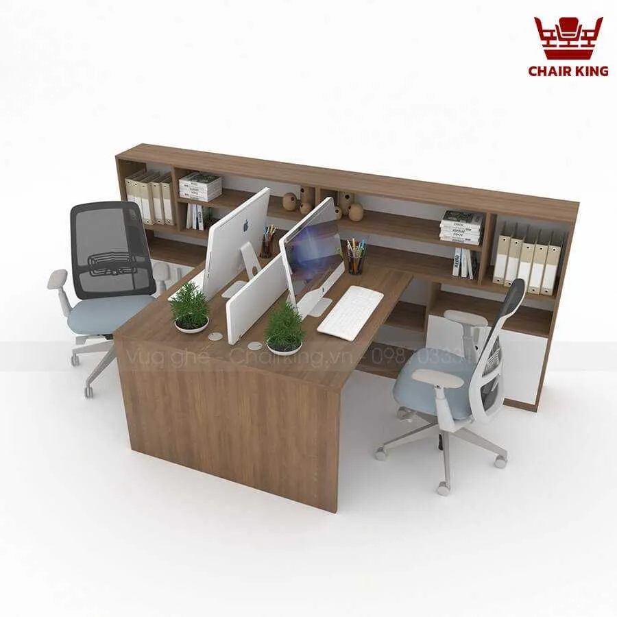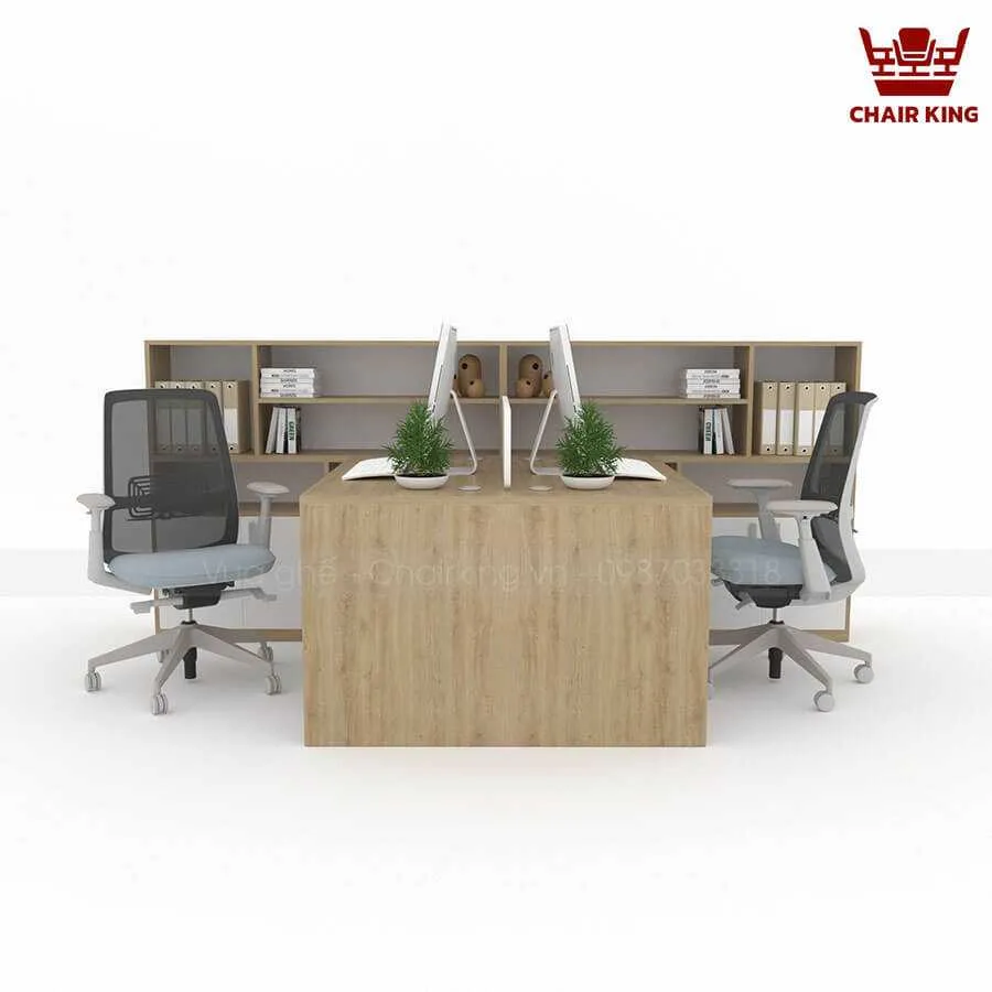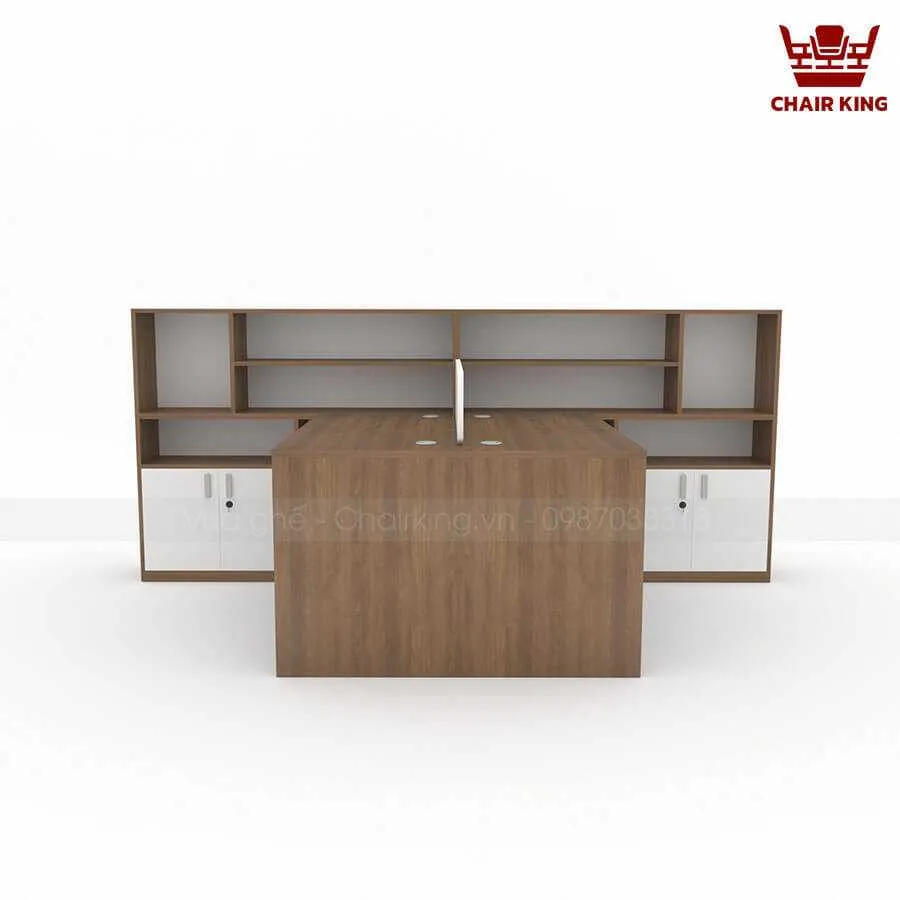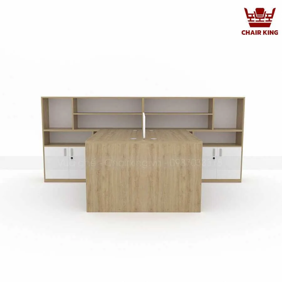 Bàn làm việc cụm 2 đối xứng Hestia HE03 kết hợp tủ rộng, đa công năng