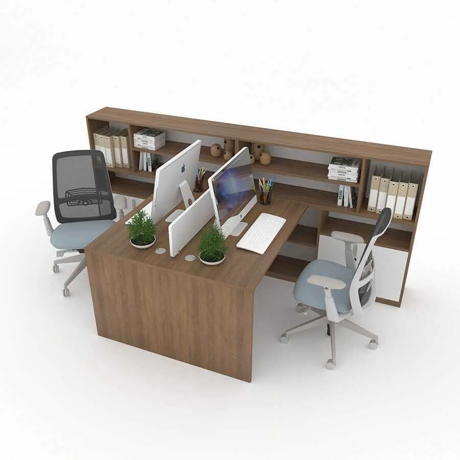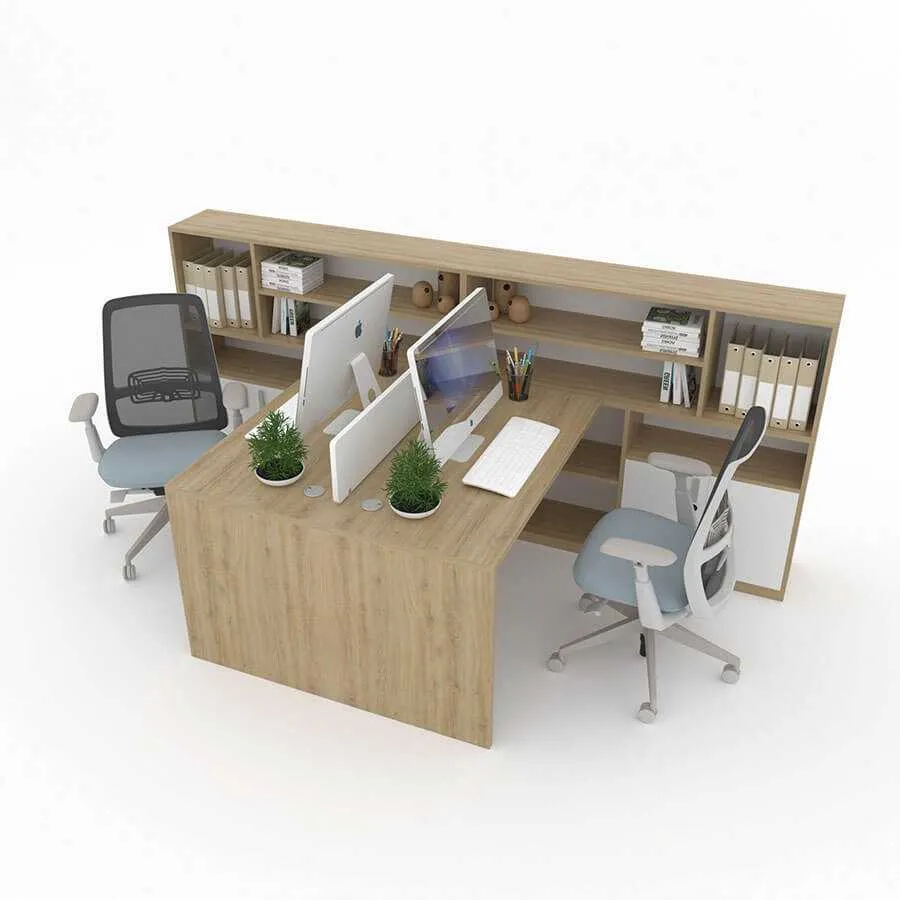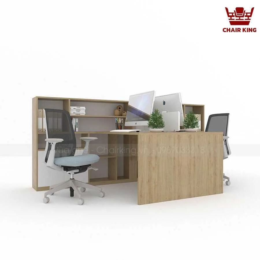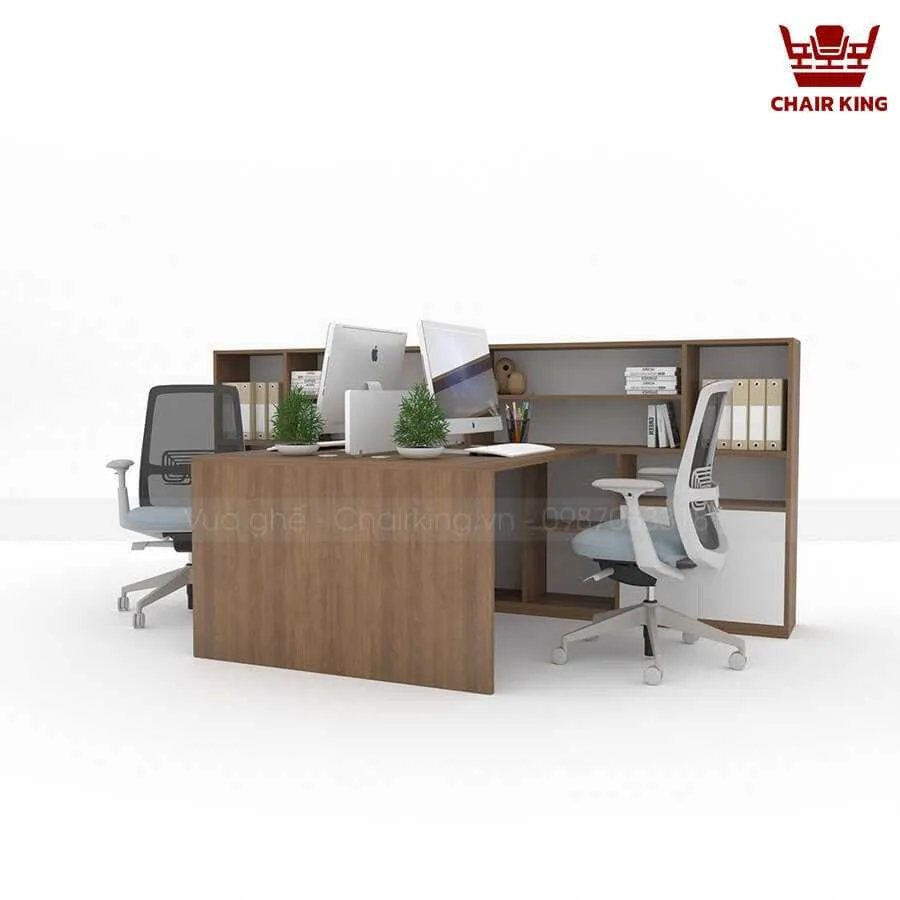 Bàn làm việc cụm 2 đối xứng Hestia HE03 kết hợp tủ rộng, đa công năng