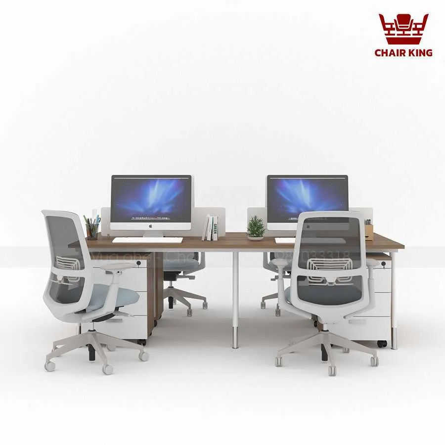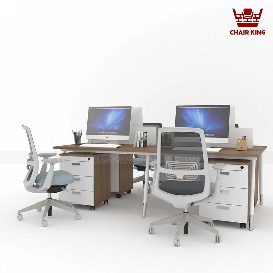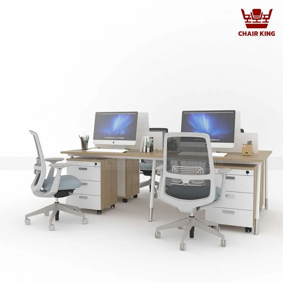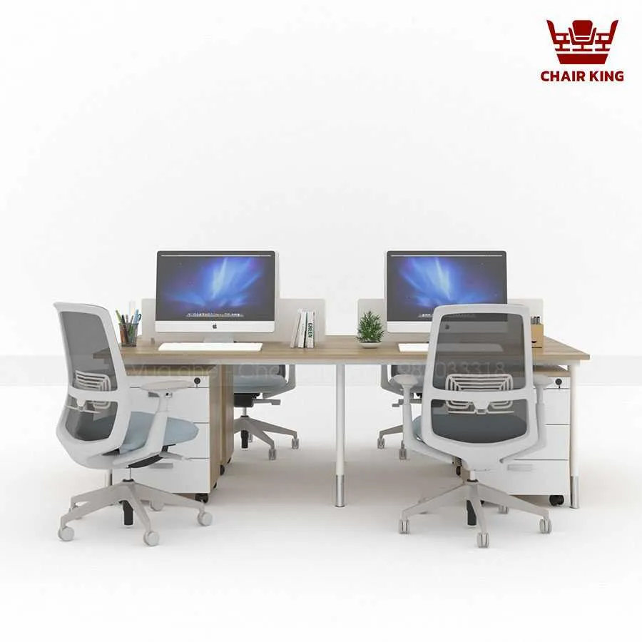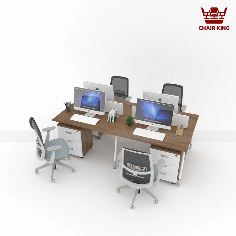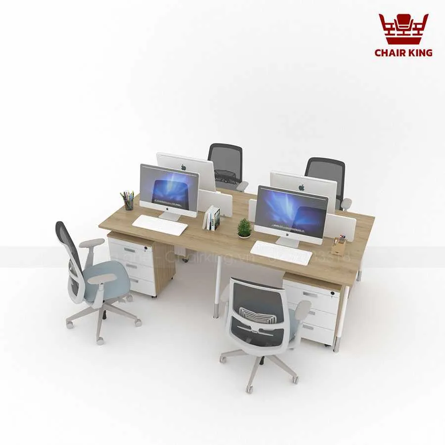 Bố cục cụm bàn 4 chỗ giúp tiết kiệm đáng kể diện tích văn phòng so với việc sắp xếp bàn đơn lẻ. Thiết kế này còn cho phép các nhóm làm việc tương tác dễ dàng hơn, tạo điều kiện thuận lợi cho việc trao đổi ý tưởng, họp nhanh ngay tại bàn mà không cần di chuyển nhiều. Đây là yếu tố quan trọng giúp nâng cao hiệu quả công việc trong môi trường hiện đại.