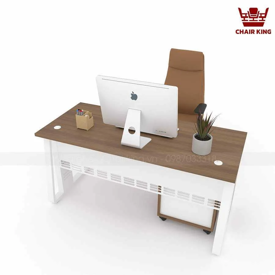 Bàn sở hữu 2 tủ phụ liền sát đất gồm 4 ngăn, trong đó có 2 ngăn kéo sắp xếp so le nhau. Mặt bàn có kệ để tài liệu giúp người sử dụng bố trí bàn làm việc khoa học hơn. Vách ngăn thiết kế khoa học vừa tạo sự riêng tư vừa tăng diện tích sử dụng.