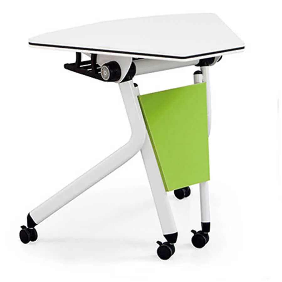 Thiết kế chân bàn tích hợp bánh xe giúp di chuyển dễ dàng, đặc biệt hữu ích trong các môi trường cần thay đổi bố cục thường xuyên như phòng đào tạo hoặc hội thảo. Khi không sử dụng, bàn có thể gập lại gọn gàng, giúp tiết kiệm không gian tối đa. Đây là một lợi thế lớn đối với các văn phòng có diện tích hạn chế hoặc những không gian đa chức năng