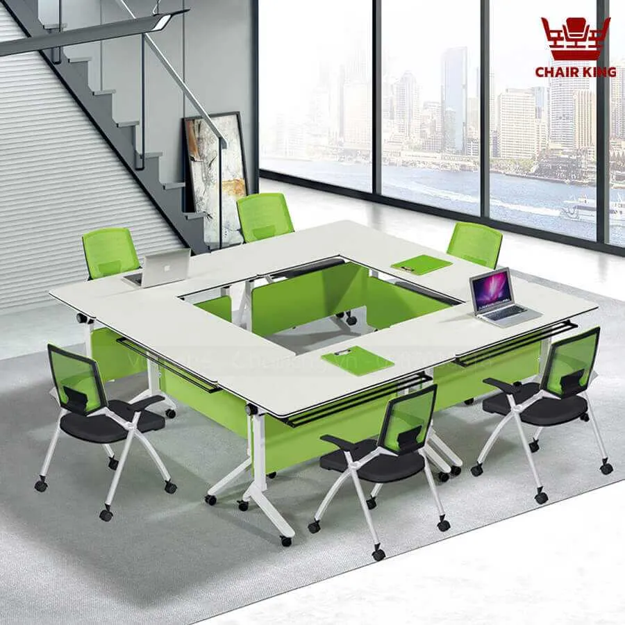 Trung tâm đào tạo, lớp học: Thiết kế gọn nhẹ, dễ di chuyển và gập gọn giúp bàn thích hợp với các lớp học, trung tâm đào tạo, nơi thường xuyên thay đổi bố cục chỗ ngồi.