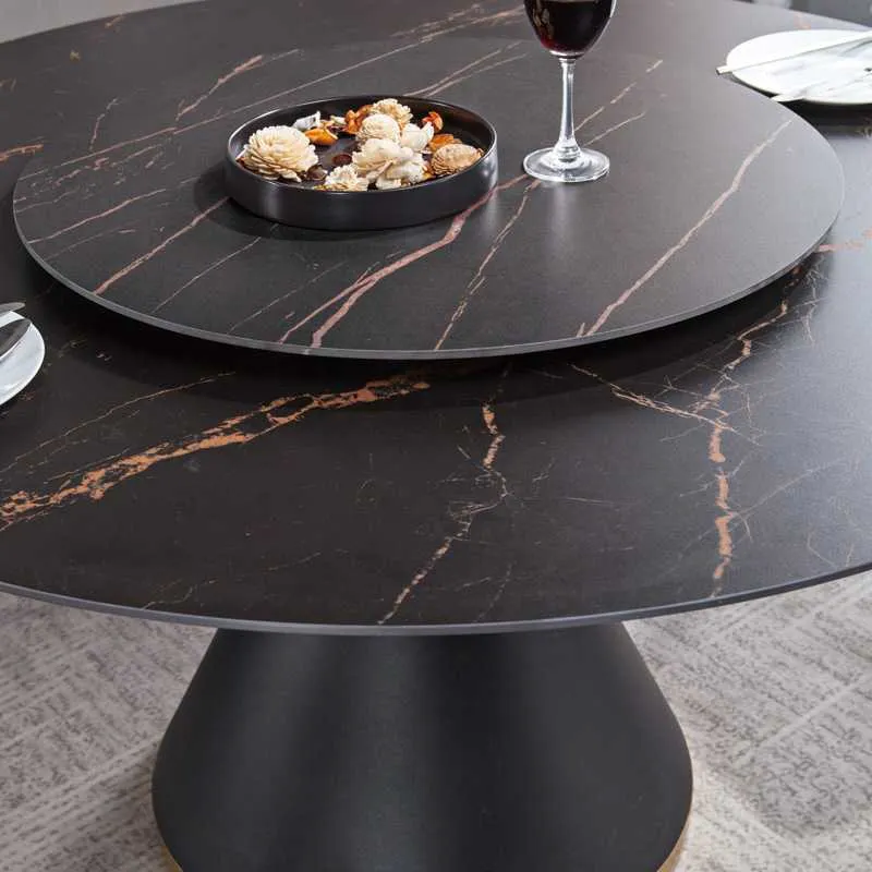 | Màu sắc | Chân bàn sơn tĩnh điện đen nhám, viền bọc inox mạ vàng, mặt đá trắng hoặc đen