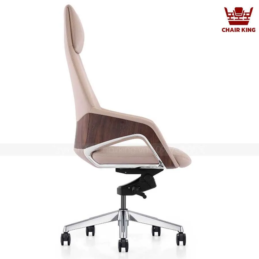 Cấu tạo ở phần tựa đầu hơi nhô ra trước, uốn cong nhẹ ở phần lưng ôm trọn vào phần cổ và phần cột sống, mang đến cảm giác thư giãn tuyệt đối. Điểm nhấn đặc biệt của sản phẩm này chính là phần khung ghế chắc chắn, được làm từ chất liệu kim loại cao cấp, kết hợp với lớp gỗ ốp sang trọng ở hai bên tay vịn. Sự kết hợp giữa kim loại và gỗ mang đến vẻ đẹp hiện đại nhưng không kém phần tinh tế, giúp tôn lên đẳng cấp của không gian làm việc.