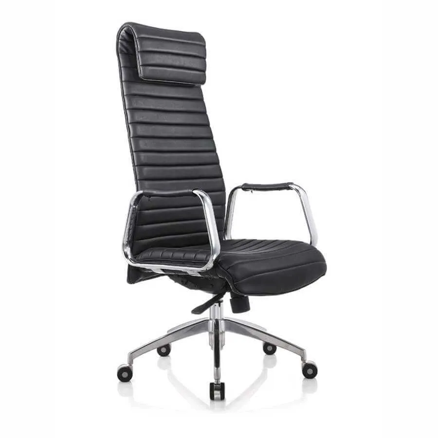 Phần đầu ghế được thiết kế cao, tạo sự nâng đỡ tuyệt vời cho cổ và vai gáy, giúp người dùng có thể ngả lưng thư giãn ngay tại văn phòng sau những giờ làm việc căng thẳng. Thiết kế này không chỉ mang lại sự tiện nghi mà còn thể hiện phong thái sang trọng, quyền uy của người lãnh đạo.