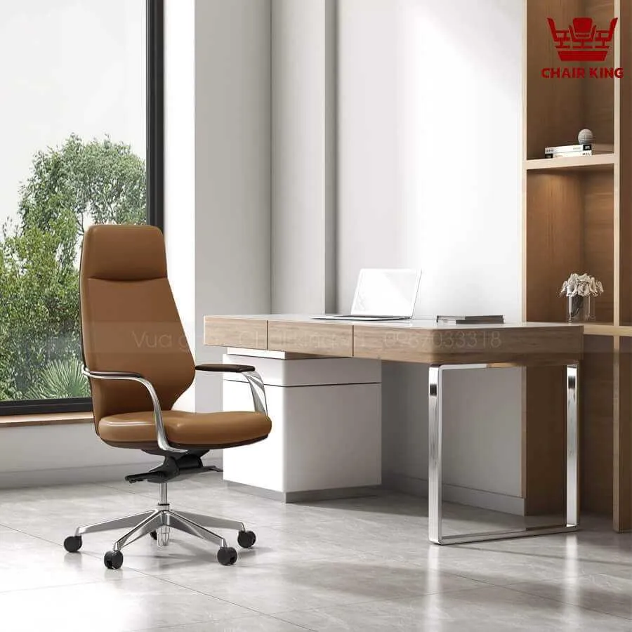 Phần đầu ghế được thiết kế cao, tạo sự nâng đỡ tuyệt vời cho cổ và vai gáy, giúp người dùng có thể ngả lưng thư giãn ngay tại văn phòng sau những giờ làm việc căng thẳng. Thiết kế này không chỉ mang lại sự tiện nghi mà còn thể hiện phong thái sang trọng, quyền uy của người lãnh đạo.