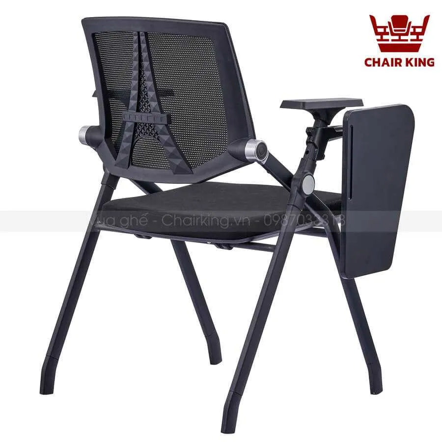 Bên cạnh đó, phần chân ghế được thiết kế đồng bộ, đảm bảo tính cân bằng và giảm thiểu rung lắc. Kiểu dáng của ghế còn chú trọng tính thẩm mỹ, giúp không gian đào tạo thêm phần chuyên nghiệp, gọn gàng và hiện đại. Việc kết hợp bàn viết gọn nhẹ nhưng chắc chắn giúp người dùng thuận tiện khi tham gia các khóa học hoặc hội thảo dài hạn.