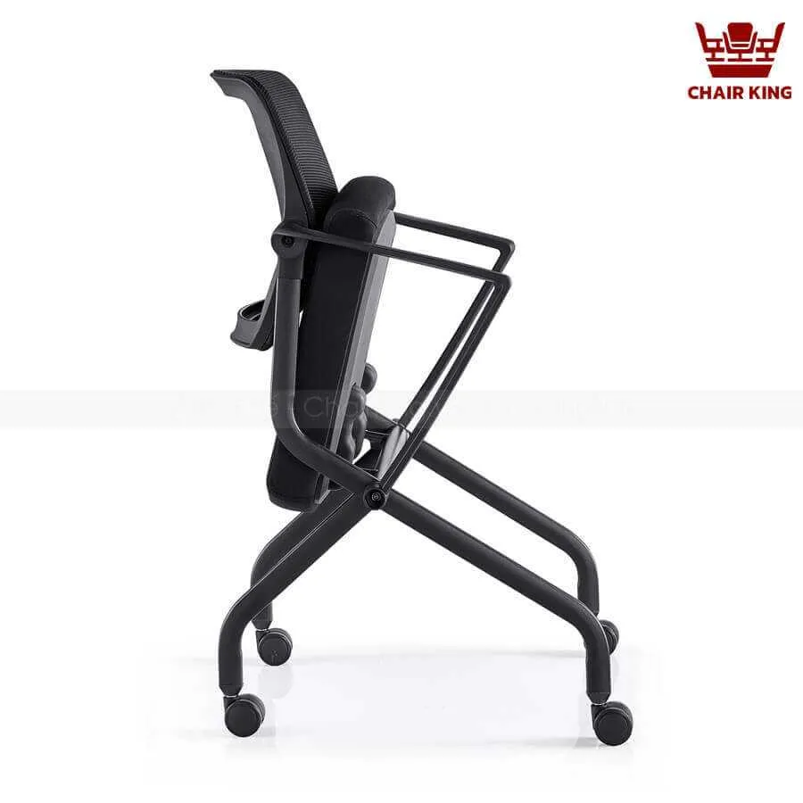 Tay ghế cách thiết kế cách điệu hình vòng cùng cân bằng lực nhằm tạo sự thoải mái cho người ngồi. Điểm cộng lớn nhất khiến Chairking Devin D330 trở thành lựa chọn ưu việt trong các không gian đào tạo chính là khả năng gập gọn vô cùng linh hoạt. Phần đệm ghế có thể gập lại dễ dàng, tạo điều kiện thuận tiện cho việc xếp chồng hoặc di chuyển, đặc biệt phù hợp trong các không gian thường xuyên thay đổi bố trí như phòng họp, hội thảo, trung tâm huấn luyện. Việc gập gọn giúp tiết kiệm diện tích cất trữ, đồng thời tăng tính cơ động cho không gian, điều mà các dòng ghế truyền thống không thể đáp ứng.
