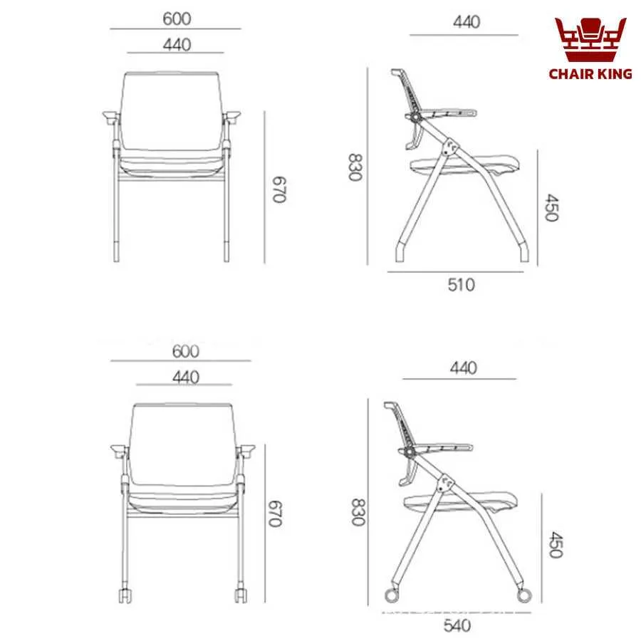Tay ghế được đặt ở độ cao vừa phải, tạo nên sự cân đối về mặt thẩm mỹ lẫn công năng. Điểm cộng lớn nhất khiến Ghế training 824A-2 trở thành lựa chọn ưu việt trong các không gian đào tạo chính là khả năng gập gọn vô cùng linh hoạt. Phần lưng ghế có thể gập lại dễ dàng, tạo điều kiện thuận tiện cho việc xếp chồng hoặc di chuyển, đặc biệt phù hợp trong các không gian thường xuyên thay đổi bố trí như phòng họp, hội thảo, trung tâm huấn luyện. Việc gập gọn giúp tiết kiệm diện tích cất trữ, đồng thời tăng tính cơ động cho không gian, điều mà các dòng ghế truyền thống không thể đáp ứng.
